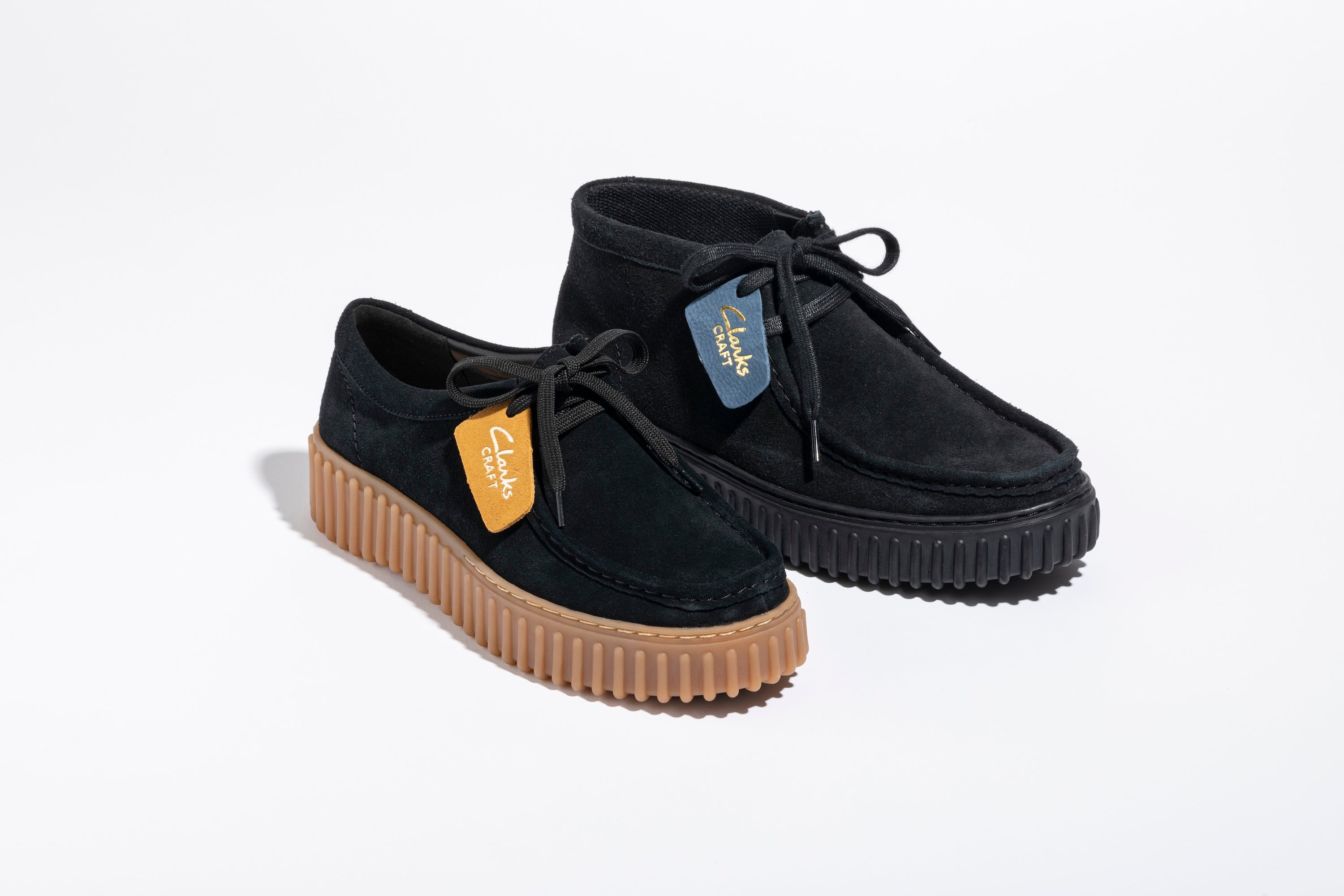 クラークスを代表するアイコンシューズのワラビーからインスパイアされた「トーヒルロー」は、ワラビーのアッパーに、90 年代に誕生したBig Gripper (ビッググリッパー) の厚底ソールを組み合わせ、クラシックながらもトレンド感のある一足。