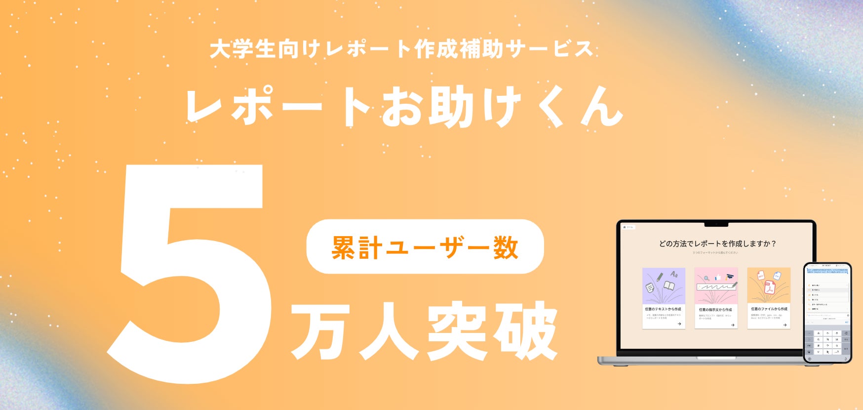 【大学生ユーザー数 5万人超え】レポート作成補助AIサービス『レポートお助けくん』が大型アップデート!