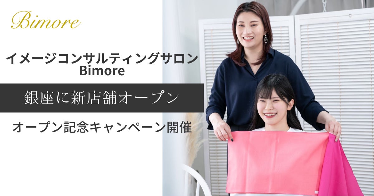 イメージコンサルティングサロン Bimore(以下、Bimore)は、新店舗を銀座エリアにオープンします。銀座店は、護国寺店、横浜店、大阪店に続き4店舗目となる少人数向けのサロンです。また、オープンに伴い期間限定キャンペーンを2024年4月8日から5月31日まで実施いたします。