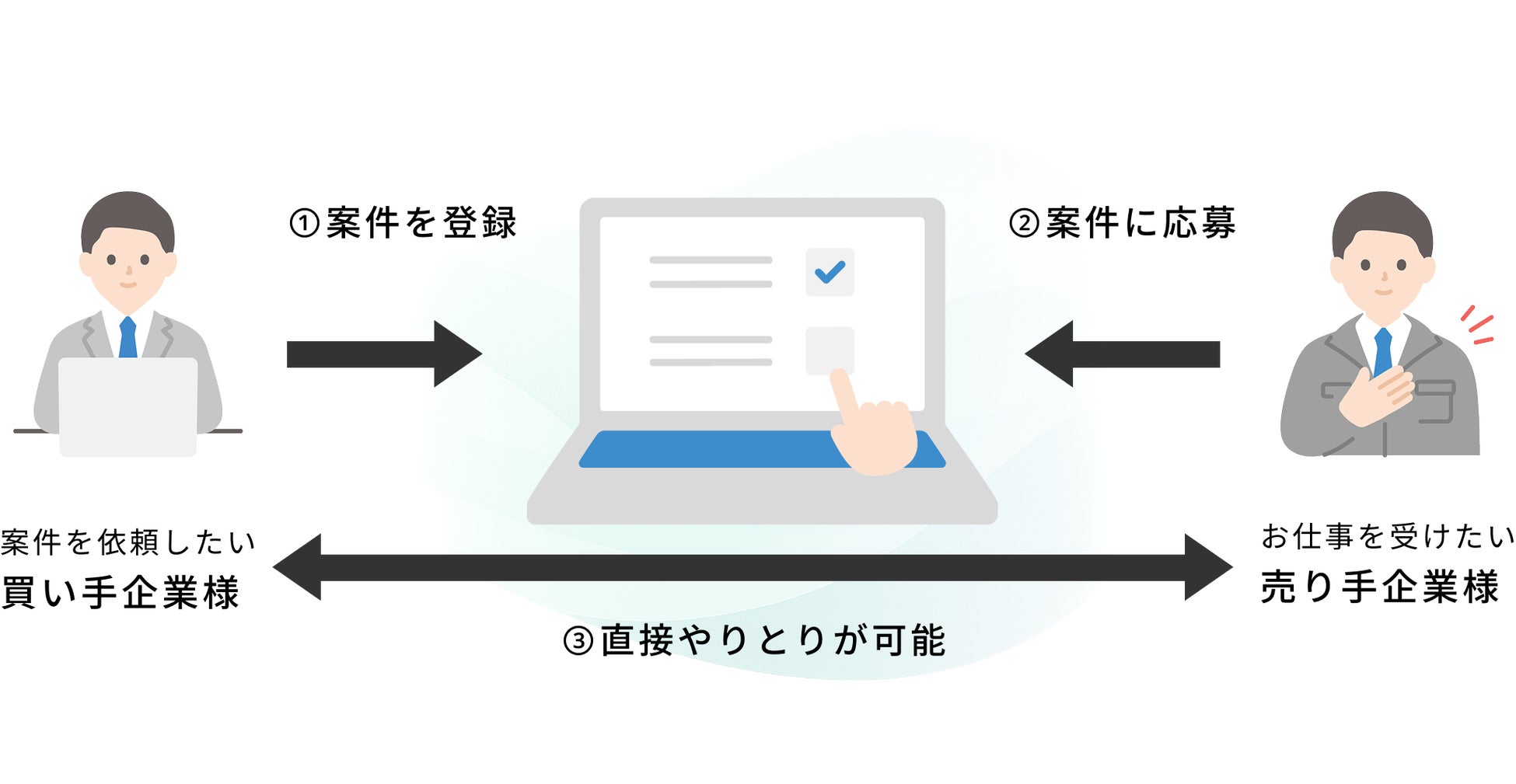 本サービスでは、登録、案件登録(購入側)、案件応募(提案、販売側)、マッチング成立における費用は一切いただかないサービスとなっております。