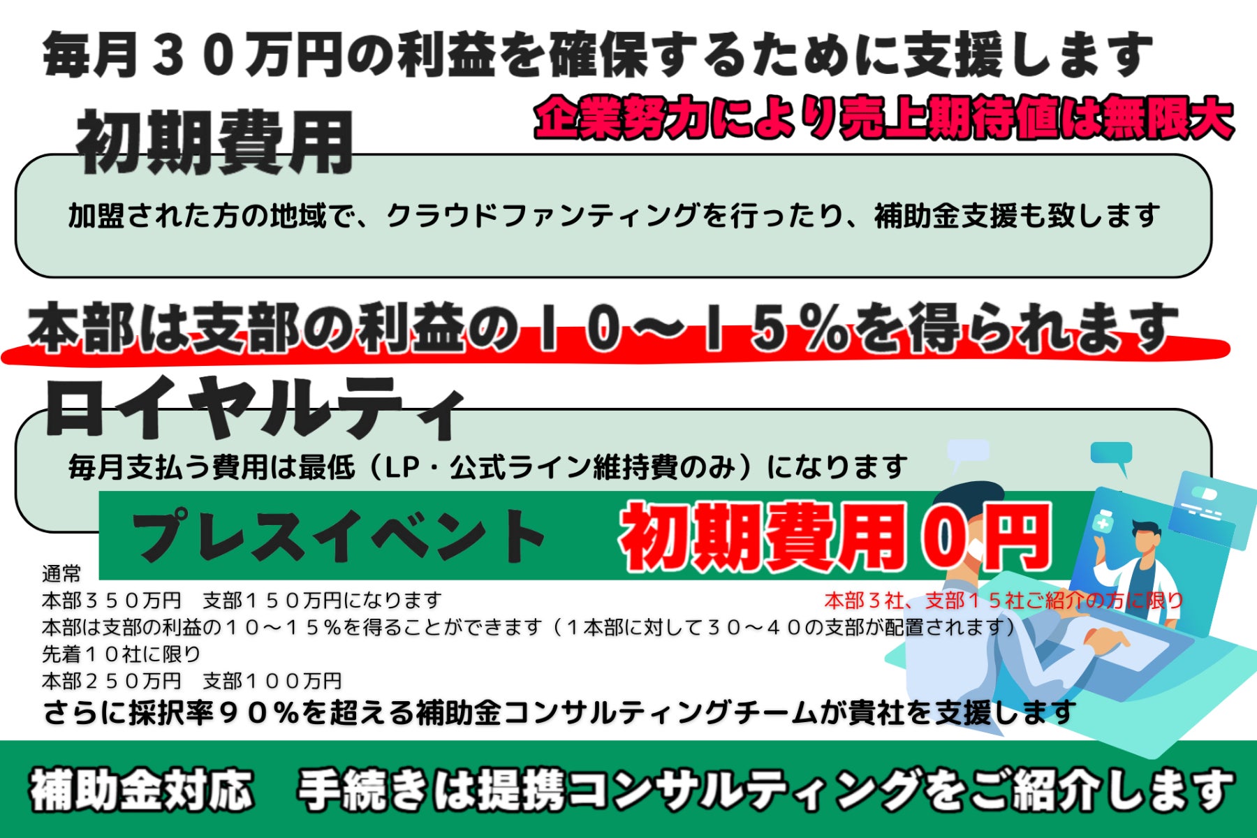 先着10社に限り、本部250万円、支部100万円での登録が可能です。
