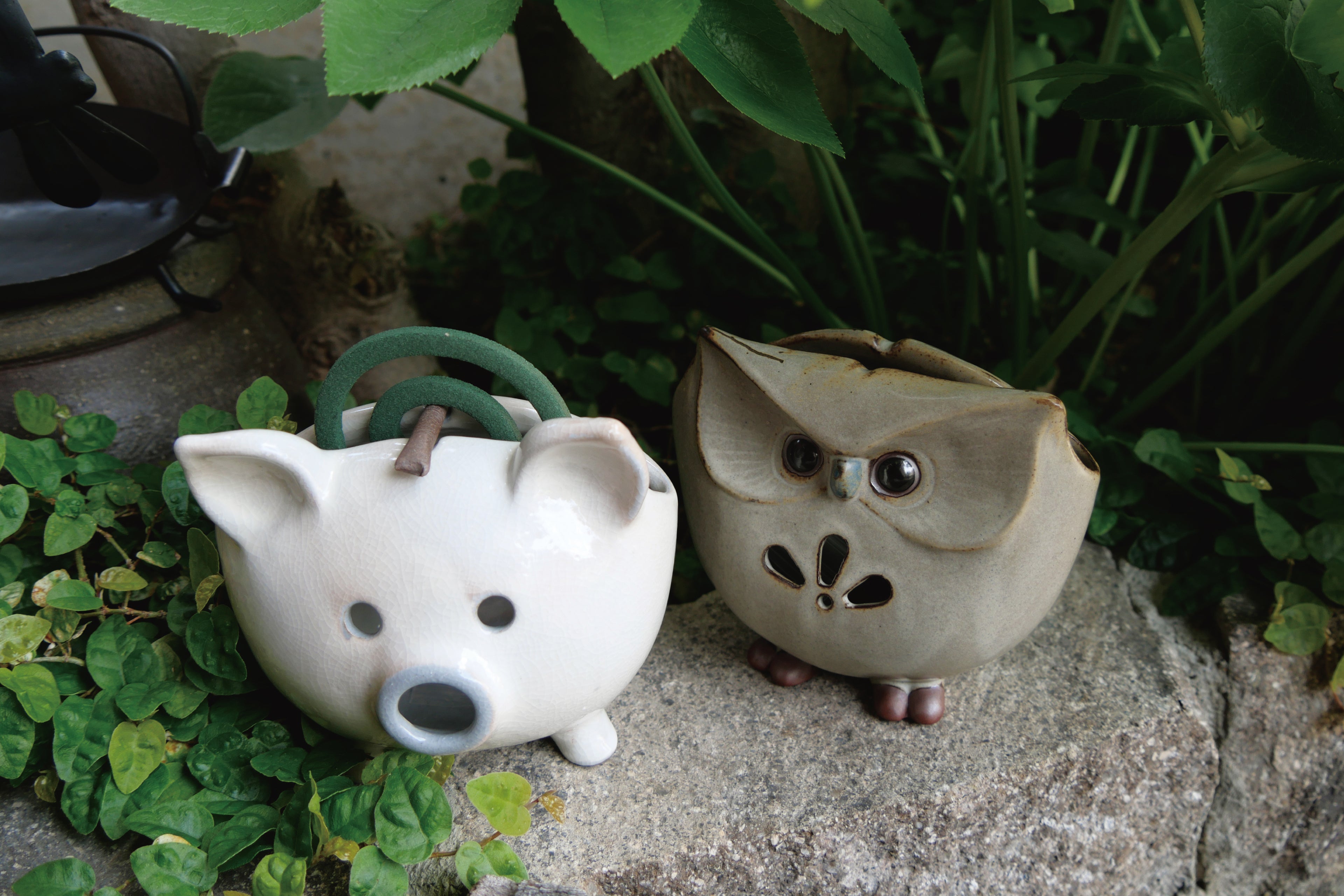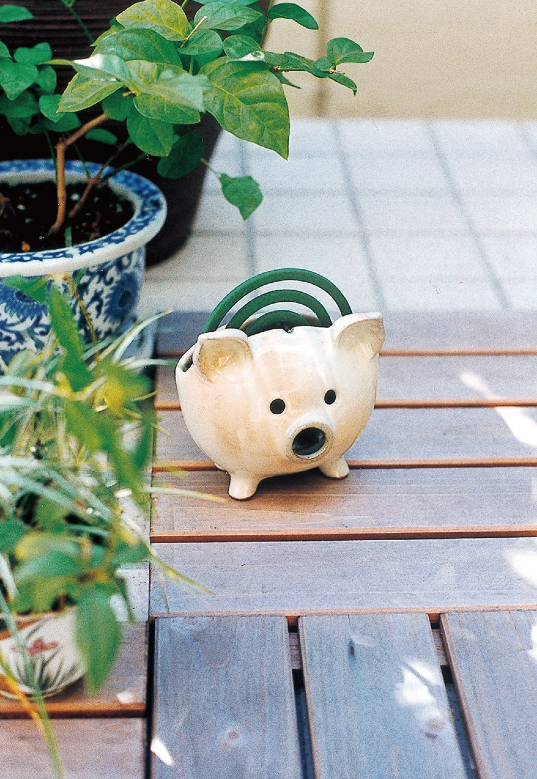 夏になるとあちこちで見かける陶器製「蚊やりブタ」。