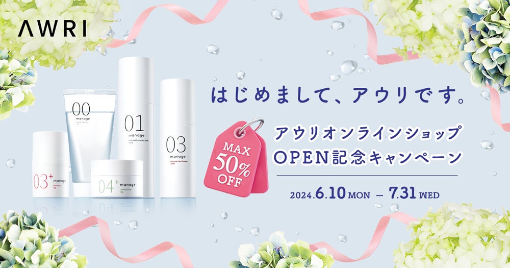 アウリオンラインショップでは、譲受したmanage(マネージ)、MediQOL(メディコル)、ふわりを中心としたスキンケア及びヘアケアアイテムを販売いたします。