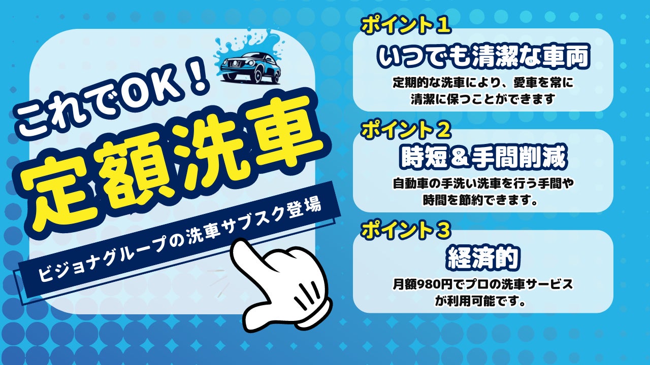 株式会社ビジョナグループ(本社:東京都立川市高松町2-39-20、代表取締役社長:鷲尾潤二)は、自動車の洗車を手軽に行えるサブスクリプションサービス「くるペット」の提供をスタートします。