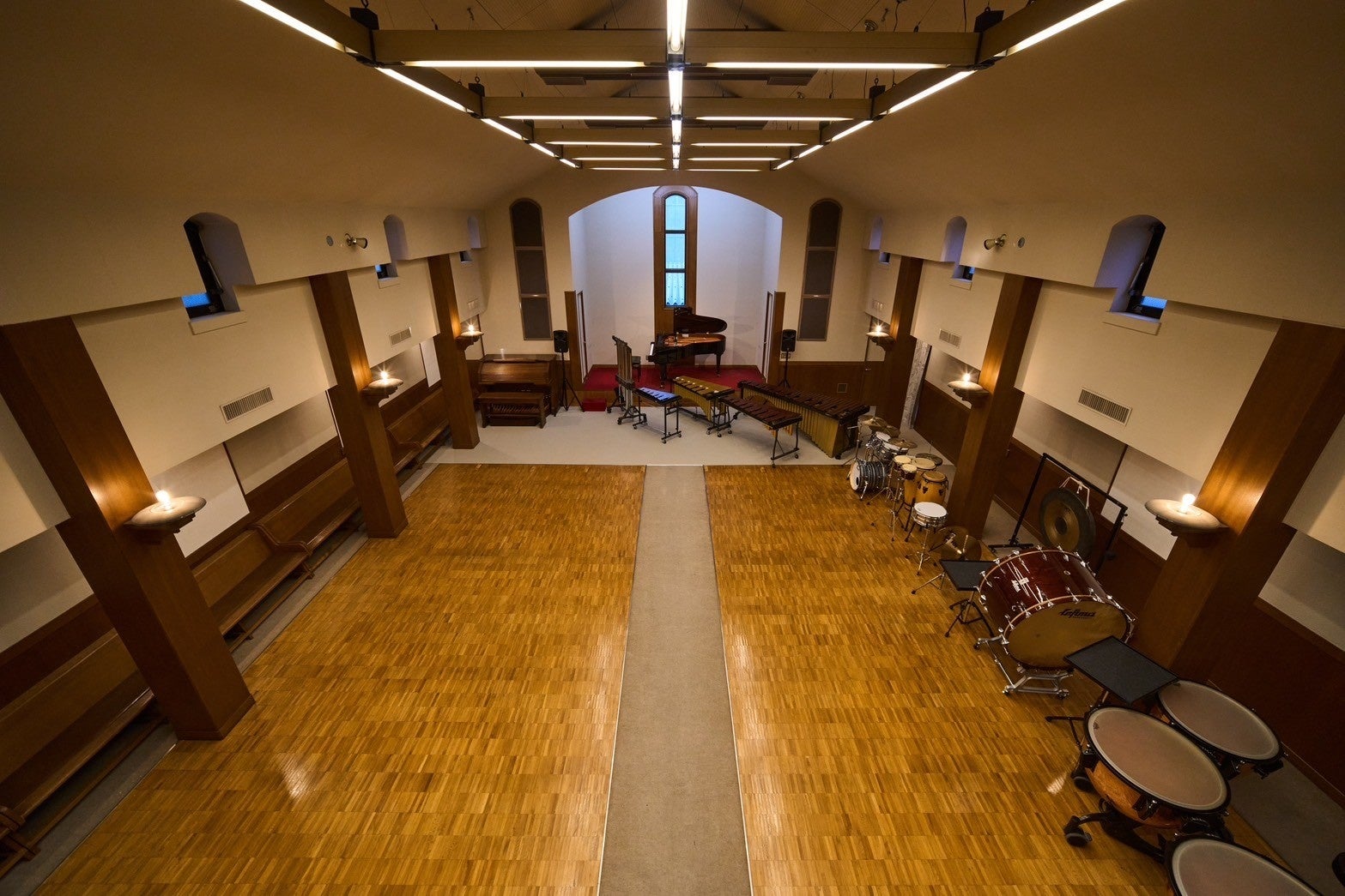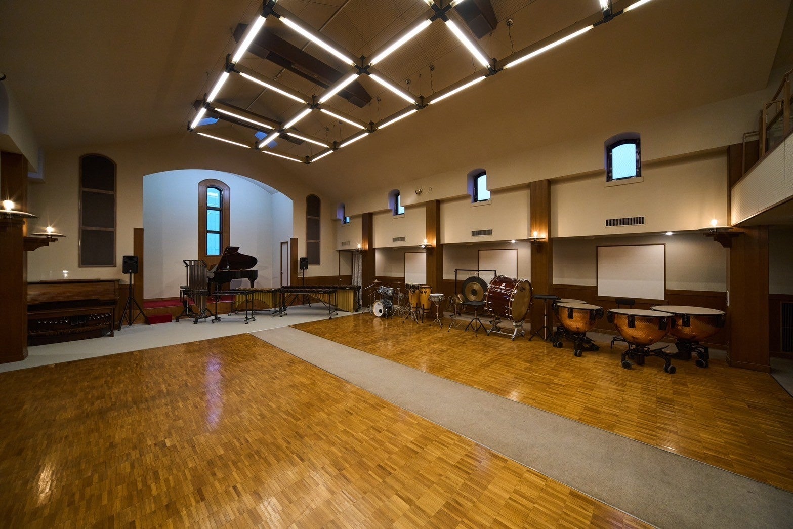 建物は旧基督教団教会をリフォームして使用しており、3Fのホールは礼拝堂の造りを活かし、ナチュラルだが奥行ある響きを実現。吹奏楽、オーケストラやアコースティックライブ、映像撮影、演劇、ワークショップなど幅広い活用ができるスペースとなっている。