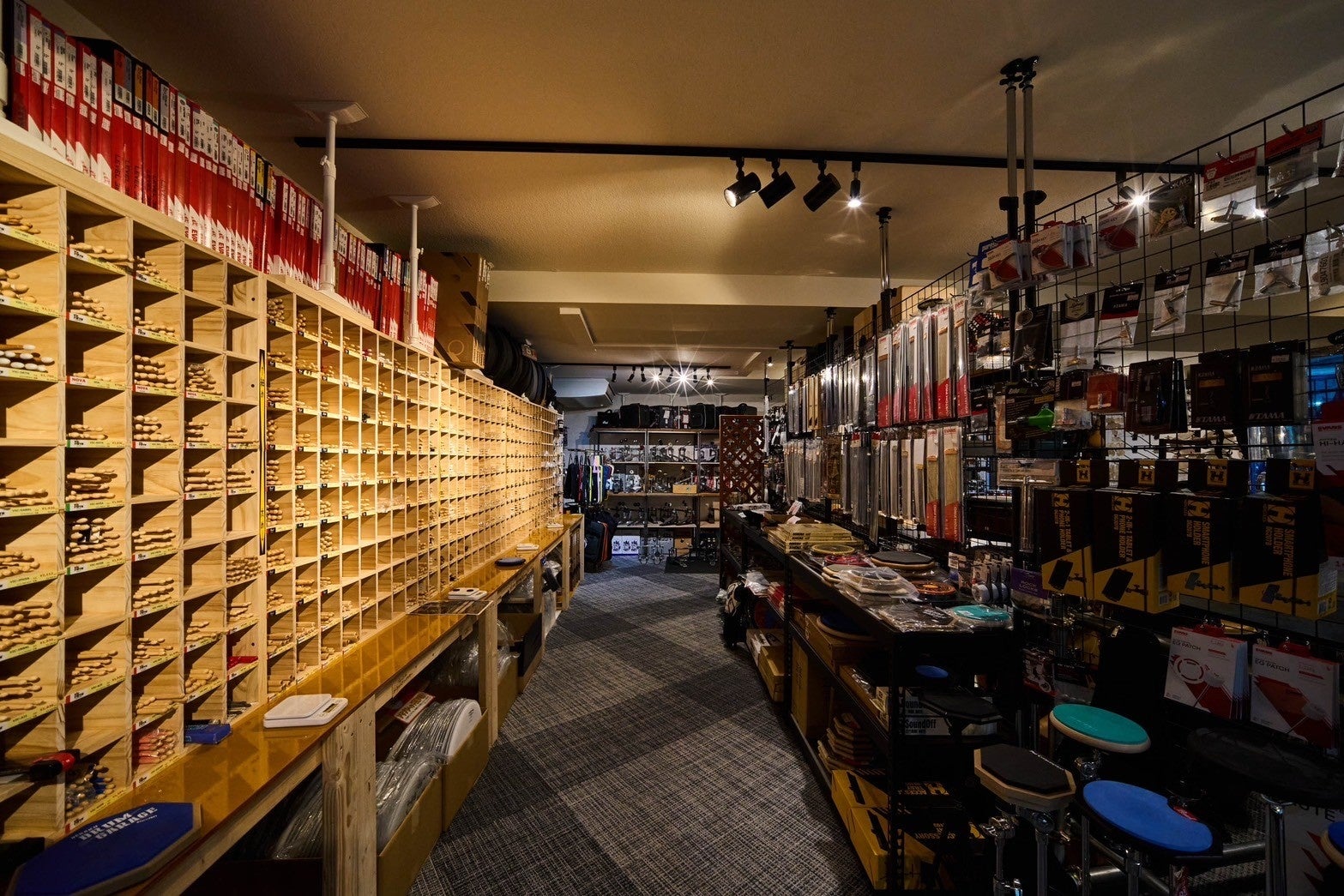 ショップフロアも20名同時にはいれるほどで、関西では群を抜いた広さを誇る。品ぞろえも豊富で壁一面を覆うスティック棚やその場で試奏できるシンバルの壁など、ほかの店舗にはない魅力あふれる内容となっている。またいわゆるドラム関連にとどまらず、クラシックパーカッション用のアイテムやマレットなど、ドラムショップの枠を超えた総合打楽器店として独自性を持つ。