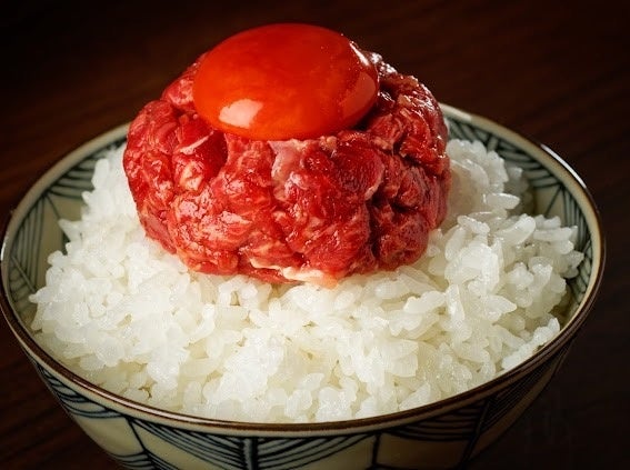 左から「心時代ユッケ」2480円、「心時代秘伝! ネギ塩タ ン(限定食)」2180円、「とにかく乗せたいュッケ井(限定食)」1480円