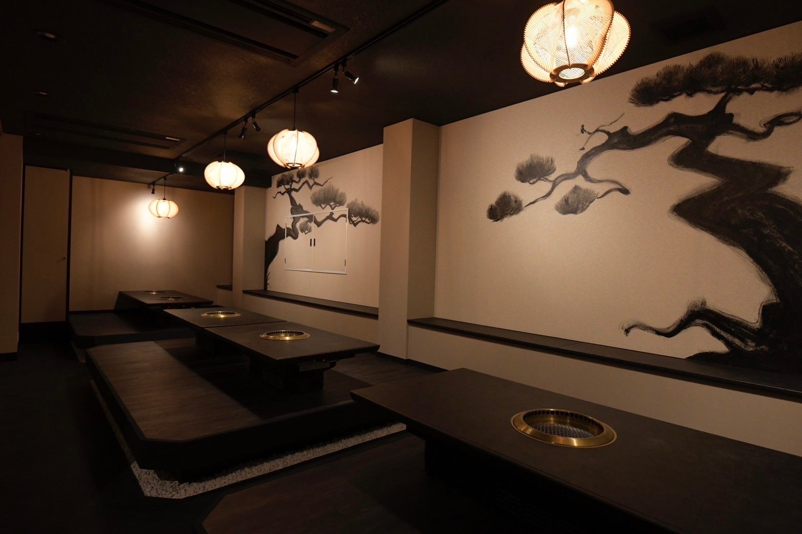 最寄駅「沼津駅」より徒歩で約10分。水墨画風の松が描かれた、モダンながら和風な店内には、個室、座敷、テーブル席で全37席をご用意。デートや接待、家族での特別な時間をご提供します。名物は心時代ユッケ。提供可能なのはおそらく静岡県で唯一ここだけかと(弊社調べ)。