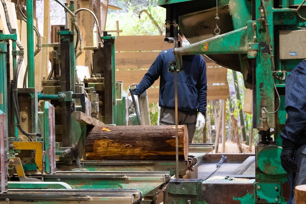木材運搬時に排出される、温室効果ガス排出量をできる限り少なくするため、今回は遠方の工場ではなく、同じく東京都内(多摩地区)にある檜原村で対応しました。