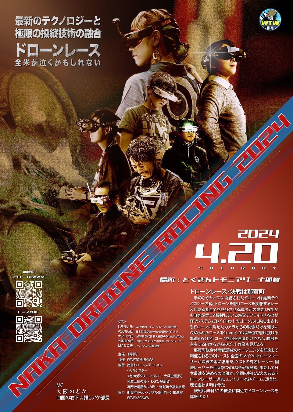 今週末、オープニングイベントの一環として、徳島県版ドローン特区である那賀町が最新のテクノロジーと極限の操縦技術の融合『ドローンレース 』を4月20日(土)13時より開催します。第1回FAI(※1)ドローンレース世界選手権で日本代表チーム初の女性パイロットも出場します。入場無料。見学や応援に奮ってご来場ください。