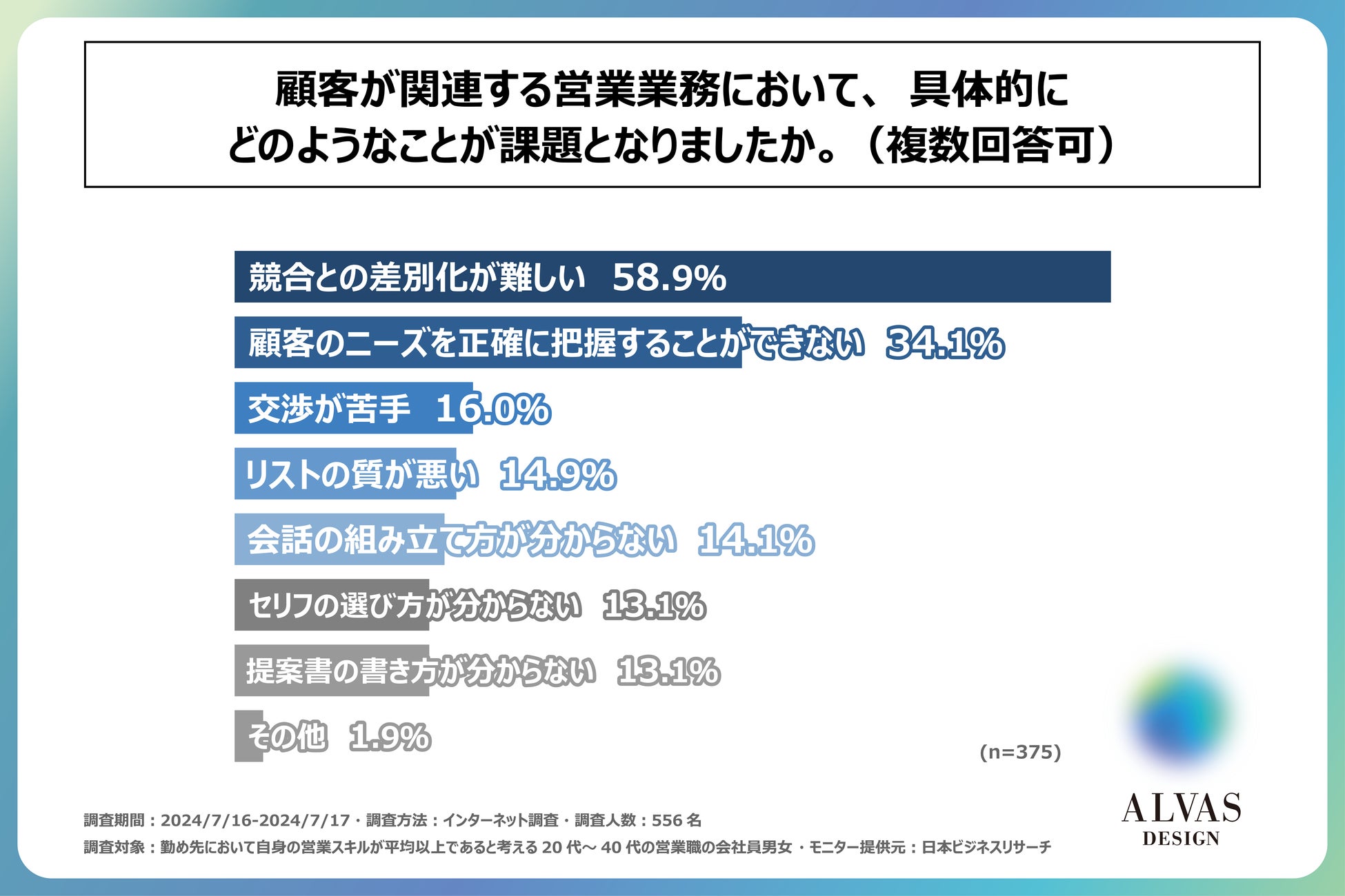営業職としての成長過程では「競合との差別化」や「顧客ニーズの正確な把握」を課題に感じた方が多い