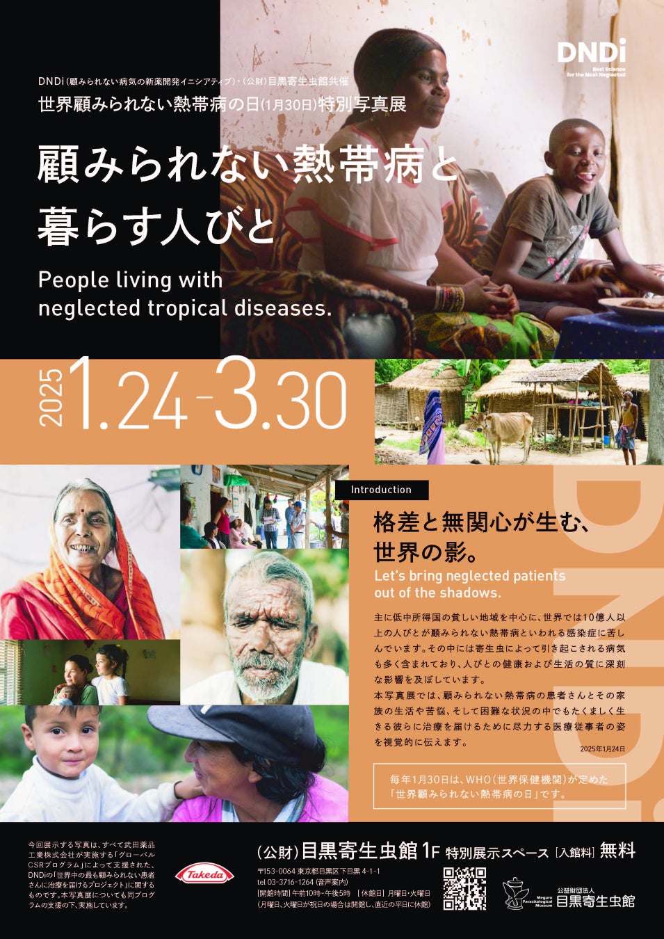 非営利で医薬品研究開発に取り組む、DNDi(Drugs for Neglected Diseases initiative:顧みられない病気の新薬開発イニシアティブ)および公益財団法人目黒寄生虫館は、共に1月30日の「世界顧みられない熱帯病の日」に併せ、1月24日より、特別写真展「顧みられない熱帯病と暮らす人びと」を開催します。なお、今回の取り組みは、武田薬品工業株式会社が実施する「グローバルCSRプログラム」※によって支援された、DNDiの「世界中の最も顧みられない患者さんに治療を届けるプロジェクト」の一環です。