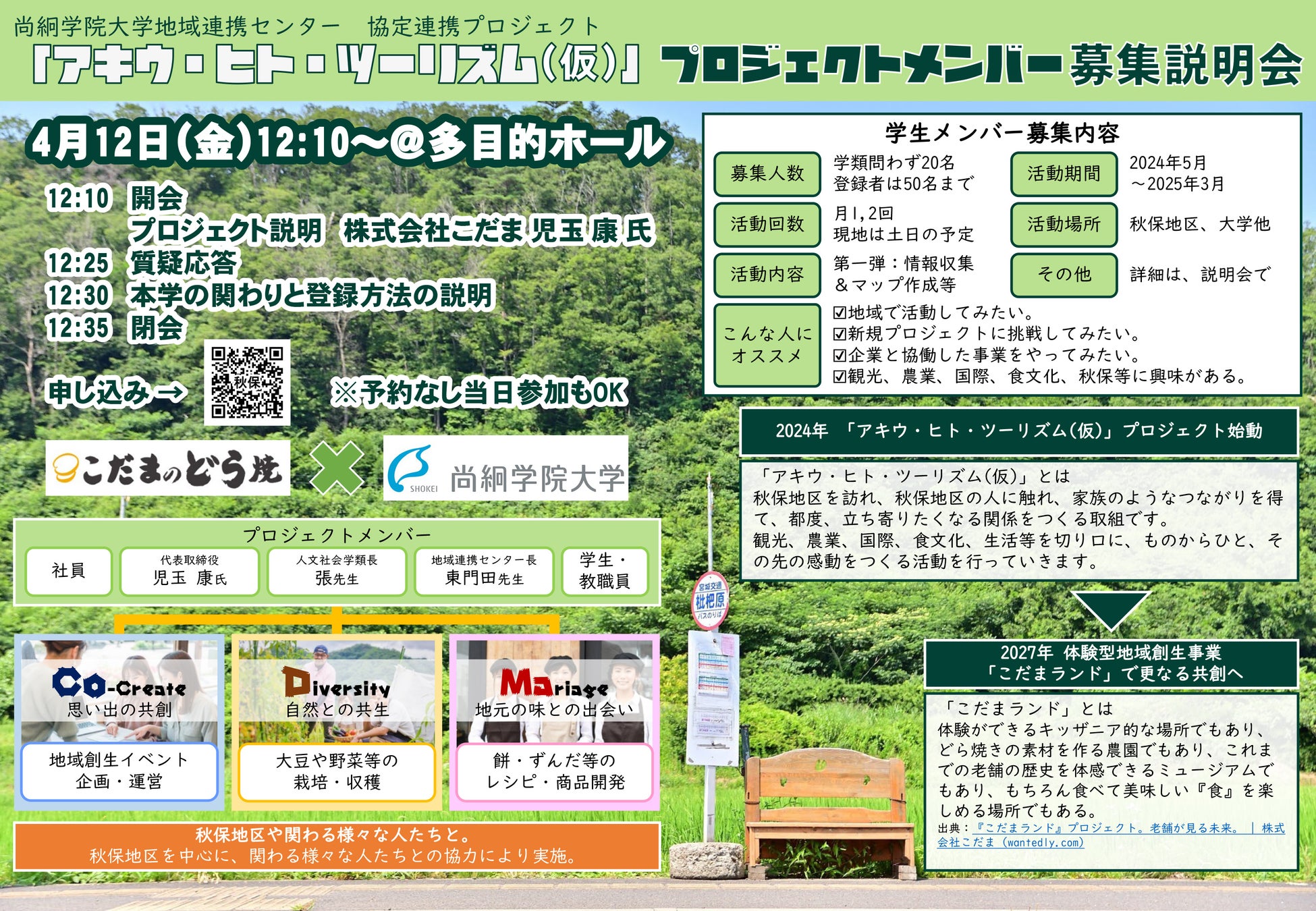 【新規】尚絅学院大学地域連携センター協定連携プロジェクト連携「アキウ・ヒト・ツーリズム(仮)」プロジェクトメンバー募集説明会・調印式