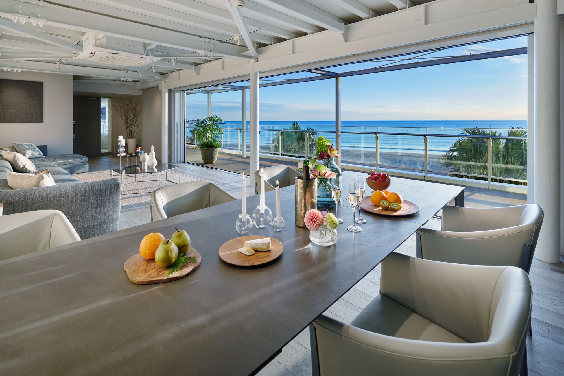 ZAIMOKU THE TERRACEトップフロアを独り占めにするラグジュアリーバケーションレンタル。1フロア貸切のプライベート空間、目の前に広がるのは鎌倉の海。170平米に及ぶ屋内と120平米の最上階のテラス。リビングダイニング、ベッドルーム、ジャグジーと全ての場所から海を眺めることができ、これぞオーシャンフロントと呼ぶに相応しいロケーションとなっております。私どもが大切に想い、そして愛する鎌倉の海とともに最幸のひとときをお過ごしください。1日1組様限定。