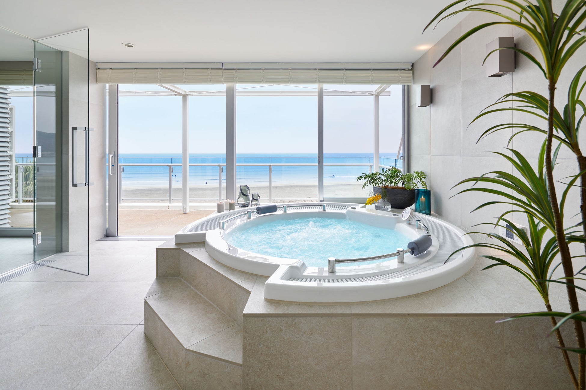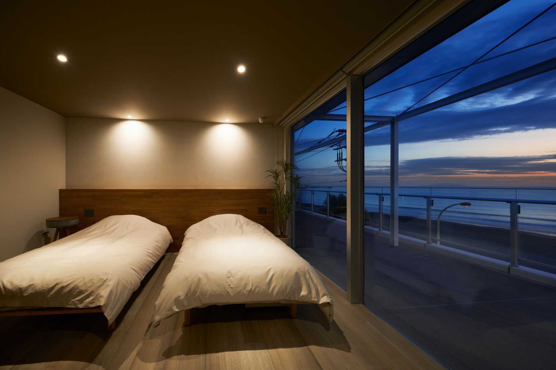 1フロア貸切のプライベート空間、目の前は遮るものがない鎌倉の海、1日1組限定。