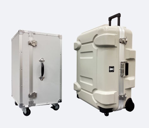 一筐体で試験環境が整いますので、今までは 8機種 (総質量 70kg) 相当の計器類を準備しなければならなかったところ、運搬が楽になり配線作業を含む環境構築工程も格段に改善されます。約22kg (本体のみ) のポータブル仕様のため現場への持ち運びも容易です。