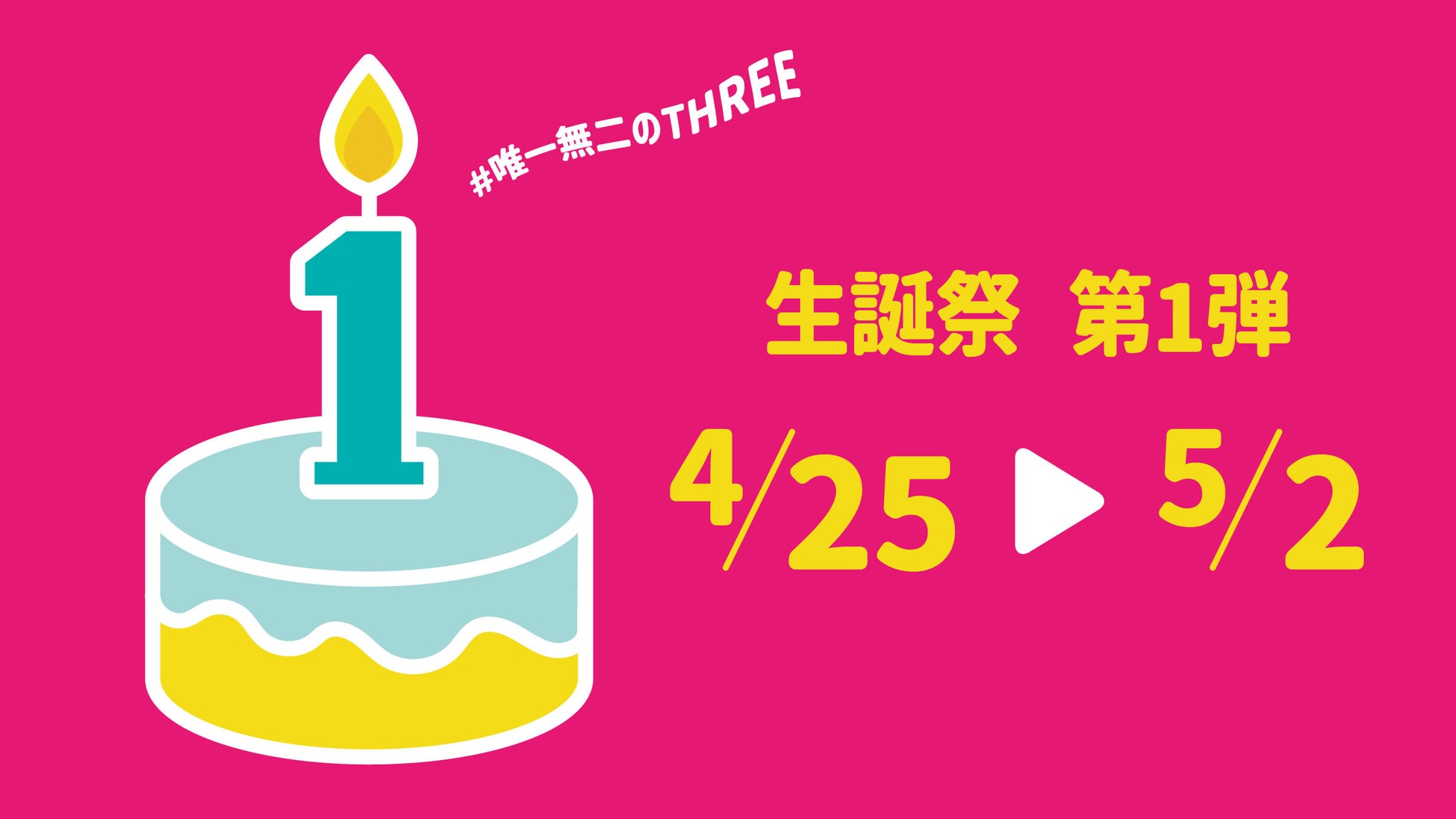 青森市の複合商業施設THREE(スリー)では、「#唯一無二のTHREE」をテーマに、2024年4月25日(木)から5月6日(月)の12日間、開業1周年を記念した「#THREE生誕祭」を開催いたします。