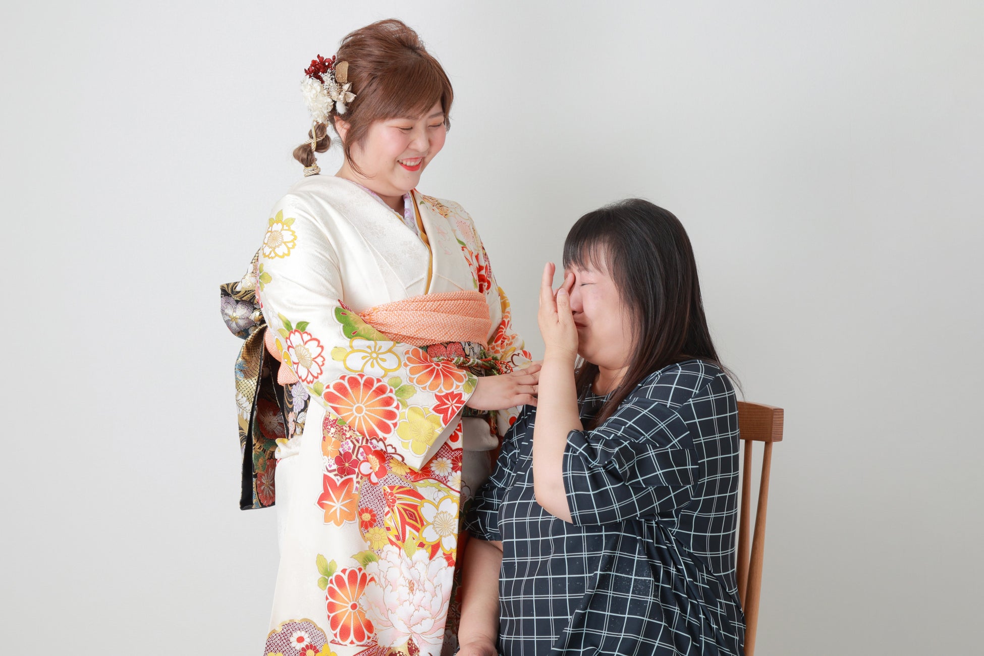 今回、撮影会に参加させていただき、体調面等もとても気を使っていただき本当に幸せな時間を過ごし大切な思い出を作ることが出来ました。着付け、メイク、ウィッグなどとても素敵にしていただきありがとうございました。スタッフの皆さんもすごく優しく、温かい雰囲気での撮影でリラックスしながら撮っていただき楽しかったです。まだまだ寛解までは長いですが頑張って行こうと思えました。こんな素敵な機会を与えてくださった、皆様に感謝です!是非この先もこの活動を続けてほしいと思います。