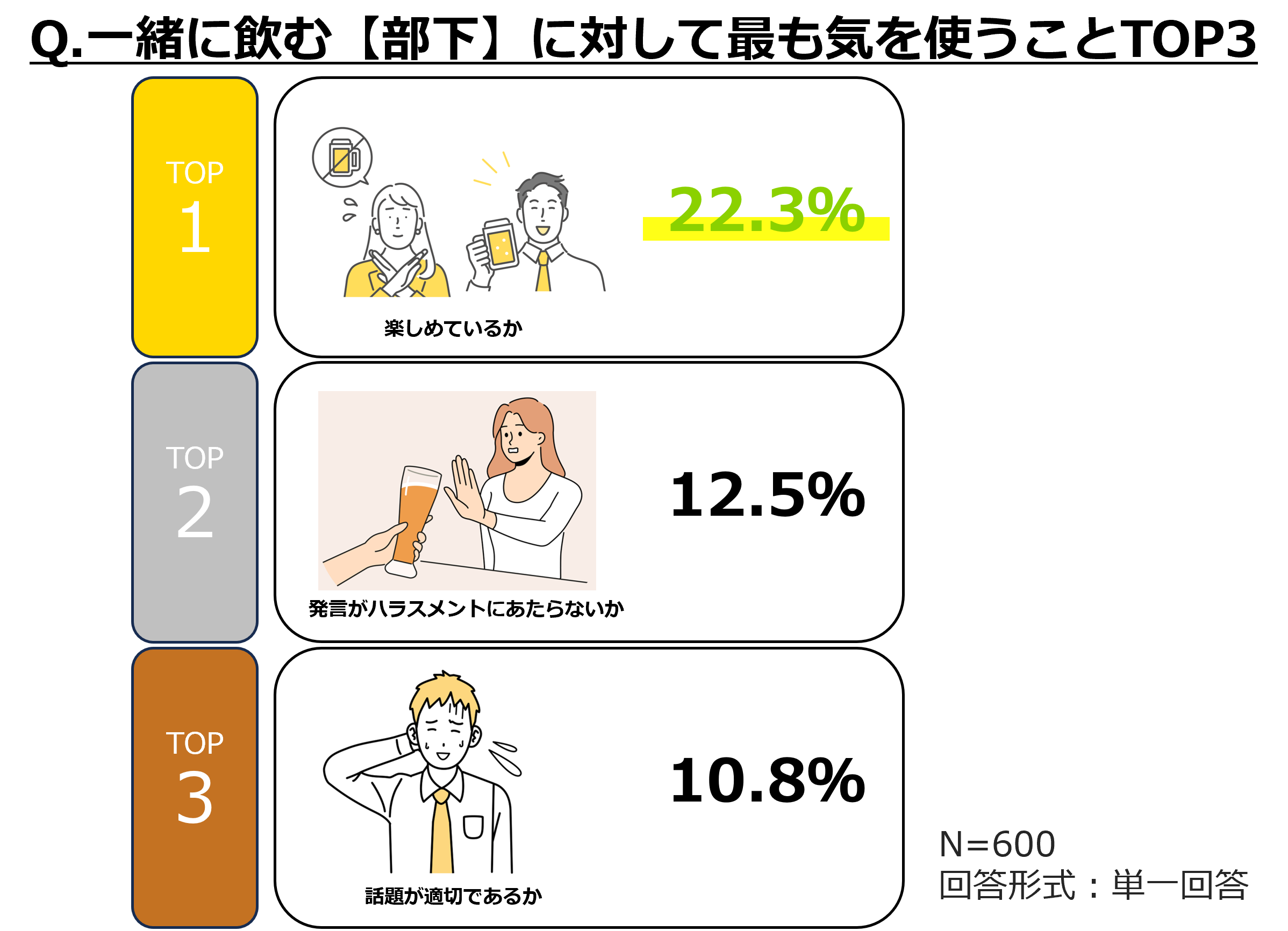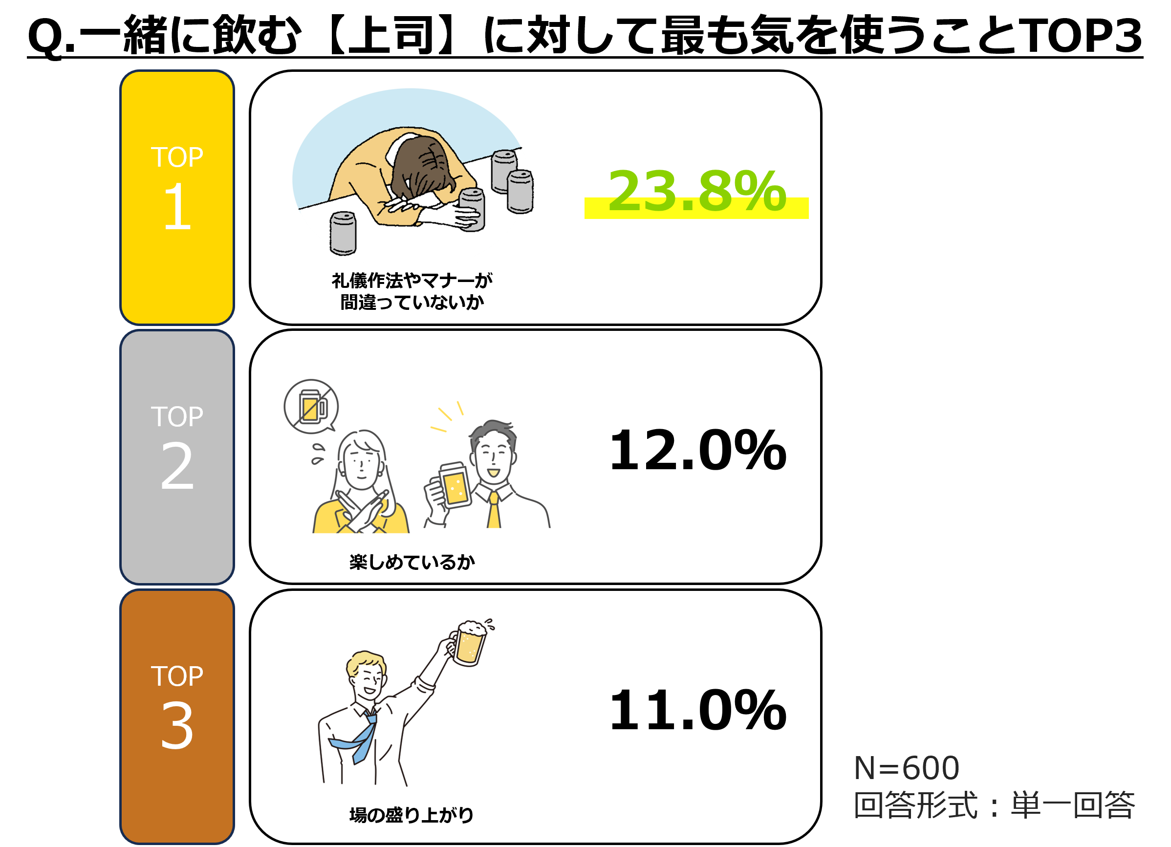 調査対象 :20代~60代の男女600人(普段お酒を飲む方/職場の飲み会に参加している方)