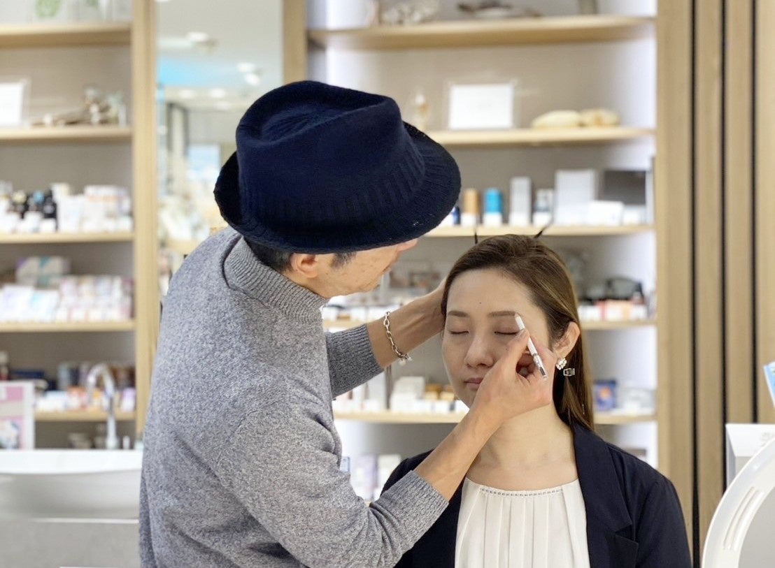 "まゆげの達人"とも呼ばれており、目の前で施される理想のまゆげメイクアップは、明らかな変化に終始、感動と驚きが絶えません!