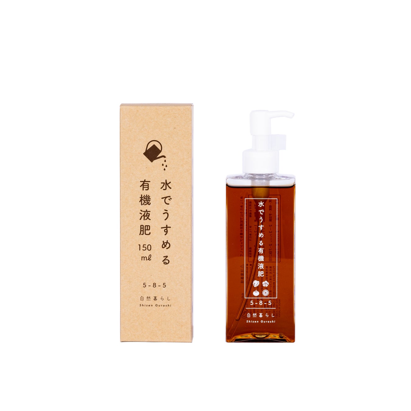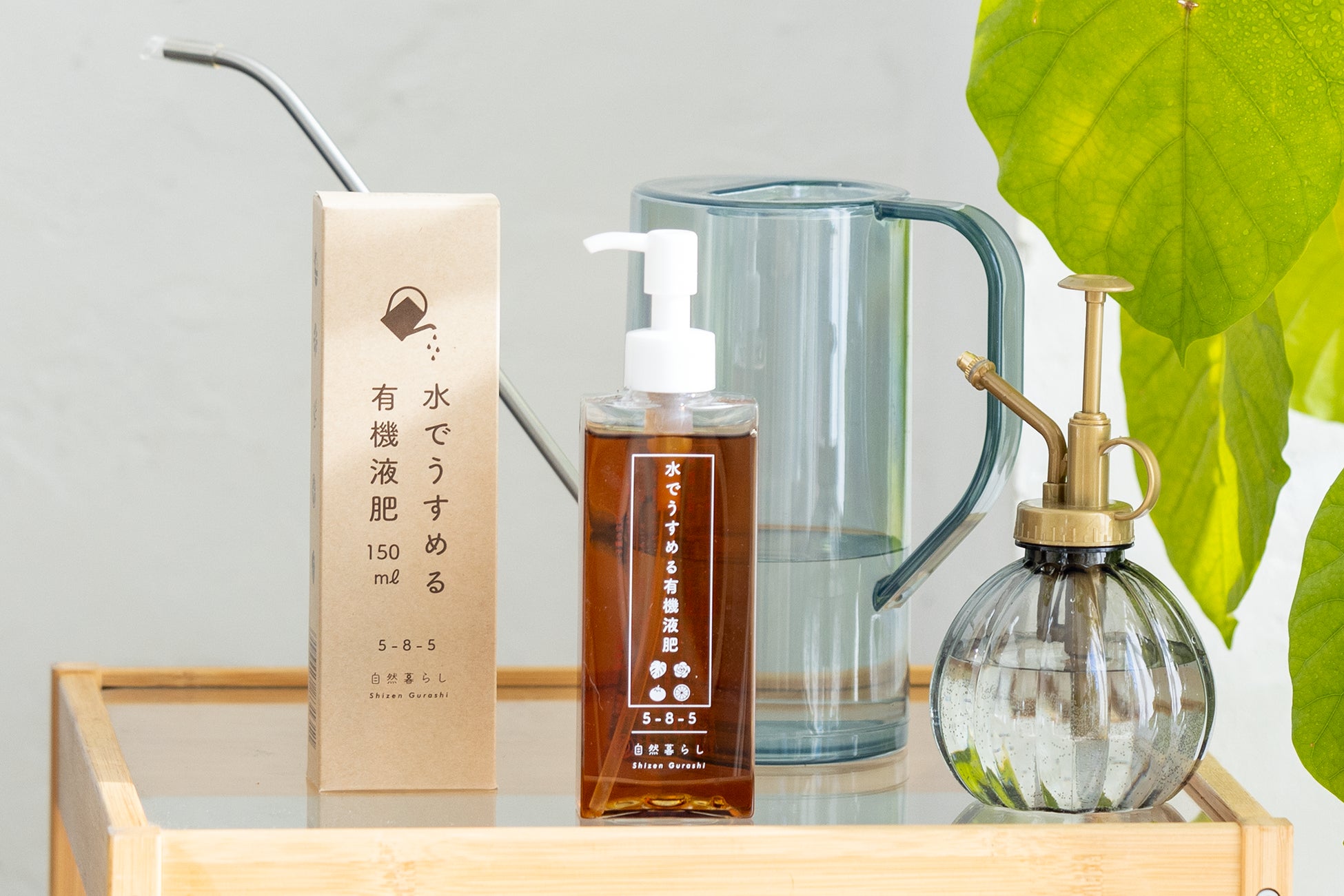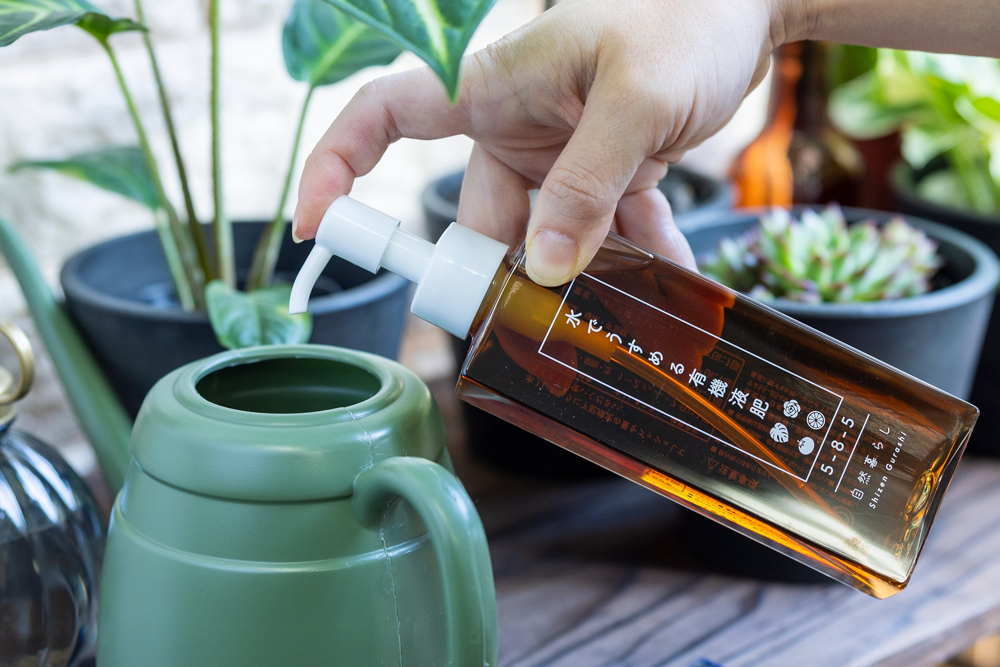 観葉植物やガーデニング、家庭菜園に、ワンプッシュで簡単計量、使いやすい「水でうすめる有機液肥」自然暮らしから販売中