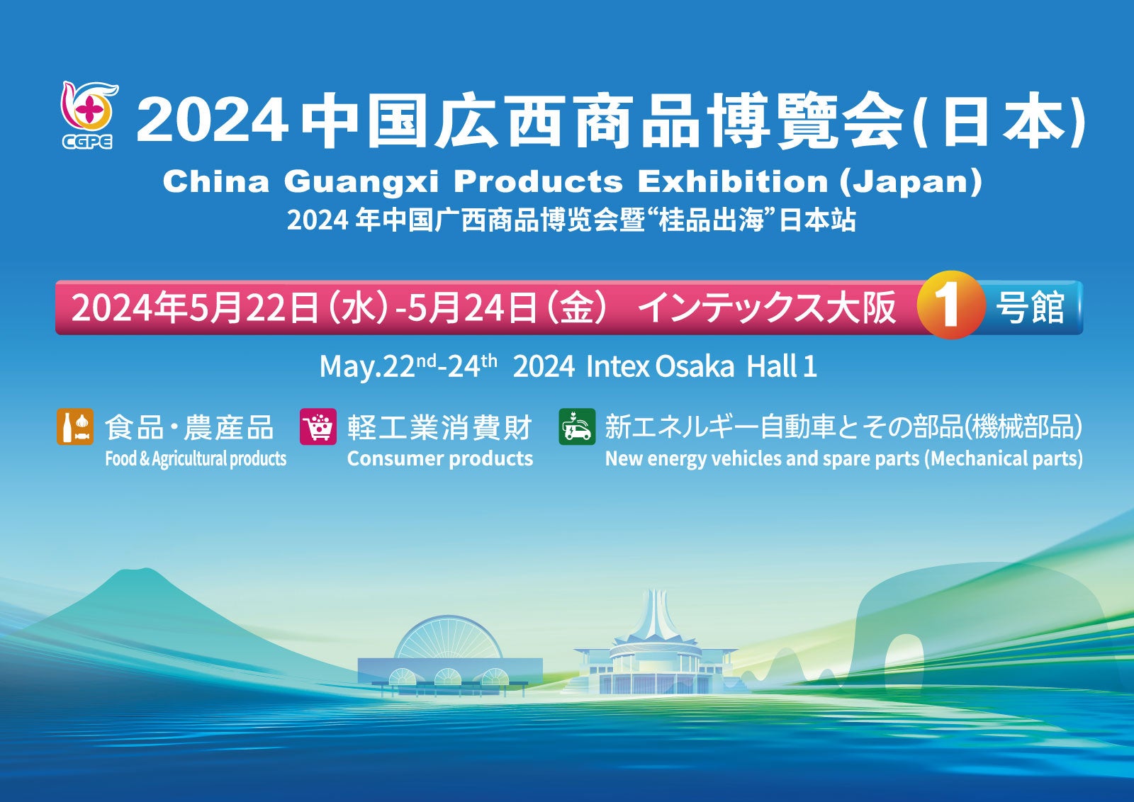 中国広西チワン族自治区商務庁は、大阪・南港にある国際展示会場インテック大阪にて「2024中国広西商品博覧会(日本)」を開催します。本展は広西チワン族自治区からEV車、食品・農産物、日用品・消費財など、広西が誇る多彩な輸出品を取扱う優良企業約80社が来日・出展する展示商談会で、2019年、2023年に続き、今回で第3回目の開催となります。開催初日の5月22日(水)には、民族衣装での開会式や投資環境説明会も開催されるほか、総面積3,000㎡の展示スペースに広西の魅力を伝える展示や出展者による製品発表会などのイベントも充実。広西の魅力に触れ、バラエティに富んだアイテムに出会える本展にぜひご来場ください。