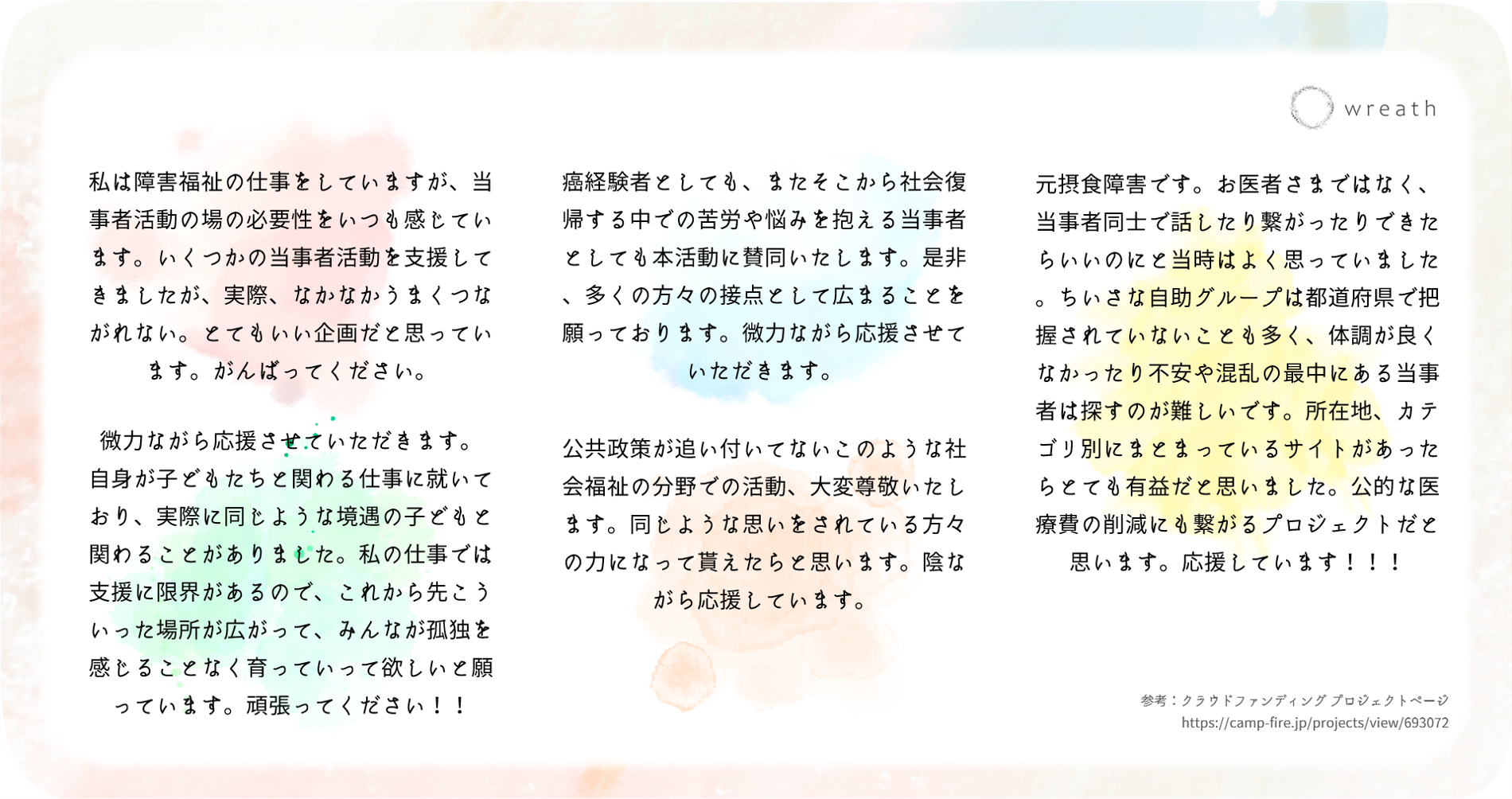 クラウドファンディングの際に寄せられた声