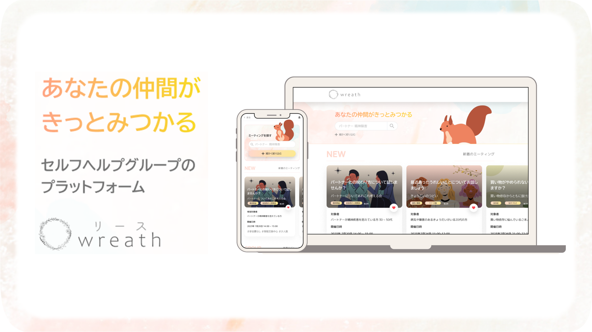 参加したい人と開催したい人をつなぐ「セルフヘルプグループのプラットフォーム wreath(リース)」のβ版をリリース