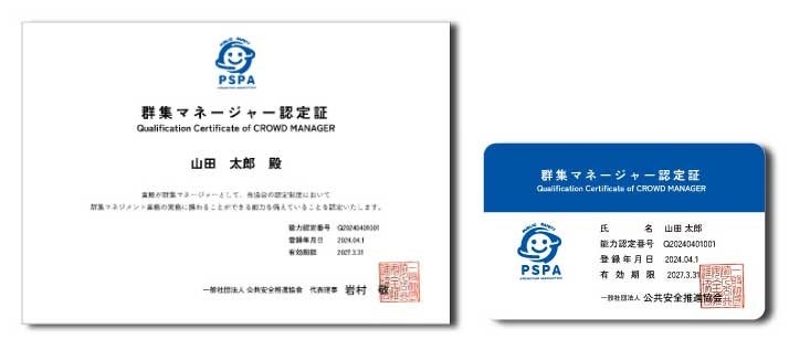講座の特徴:本講座は一般社団法人公共安全推進協会(以下、PSPA)の認定講座です。本講座を修了された方は、PSPAが認定する「群集マネージャー」として登録することができます。