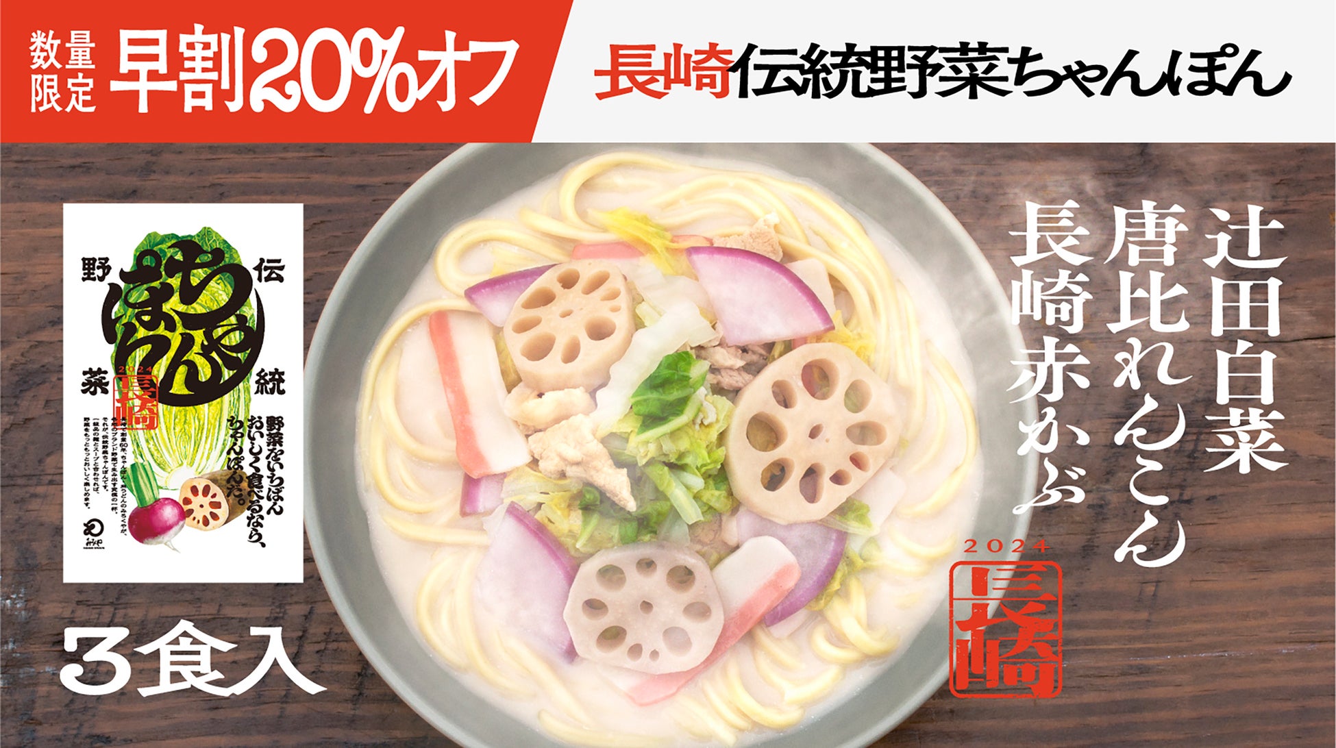 長崎のソウルフードであるちゃんぽん・皿うどんを代表商品として、長崎の「おいしい」を全国に向けて発信している株式会社みろく屋 (本社:長崎県長崎市、 代表取締役社長:山下大作)は、日本の各地で何世代にも渡って引き継がれる“伝統野菜”を使用した新商品「伝統野菜ちゃんぽん」を、2024年4月26日(金)〜5月30日(木)の期間、応援購入サービスMakuakeにて販売いたします。