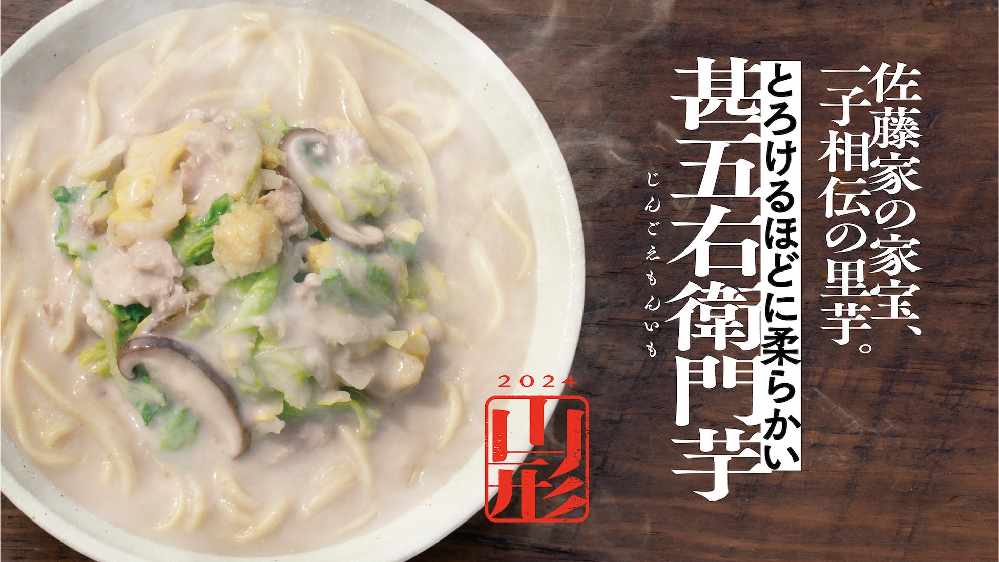 室町時代から400年以上続く佐藤家の家宝として作り続けられている里芋、「甚五右衛門芋」を使用。一般的な里芋に比べてとろみの強い特徴を活かし、すりおろした甚五右衛門芋でポタージュ風のスープに。麺に絡みつくスープから、まろやかな甘味をお楽しみいただけます。