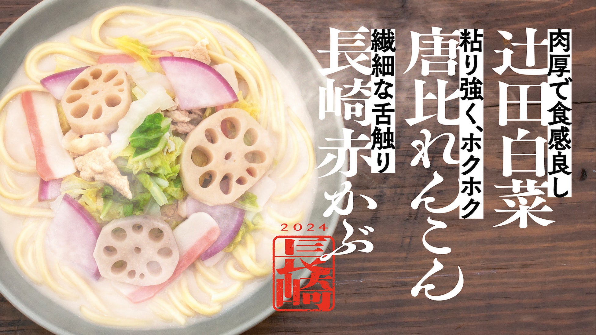 これまでの「長崎ちゃんぽん」とはひと味もふた味も違う、特徴的な伝統野菜ならではの、旨味と食感のマリアージュをお楽しみください。