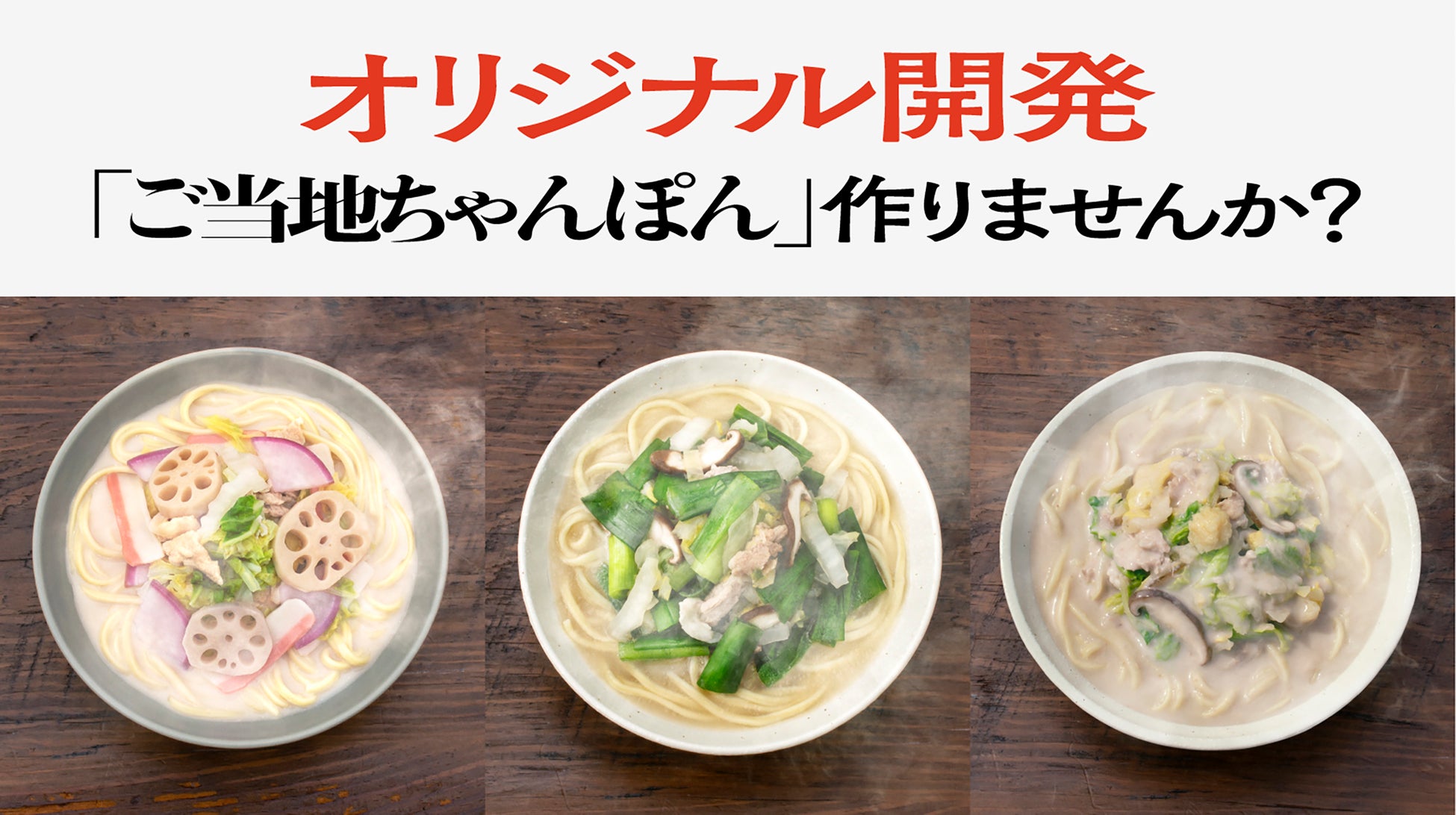 全国の農家さま、企業さま、飲食店さま、あなただけの「ちゃんぽん」を作りませんか?アジア野菜ちゃんぽん、自家栽培野菜ちゃんぽん…など。