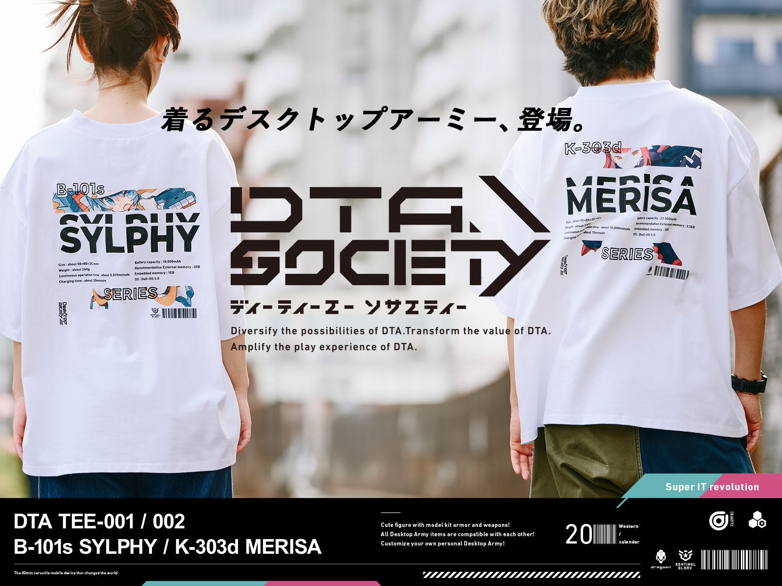 本ブランドの第1弾商品として、DTAのフラグシップキャラクターである「B-101s シルフィー」と、DTAのvol.27で販売された「K-303d メリッサ」をフィーチャーしたTシャツを2024年6月24日(月)12時より予約販売いたします。