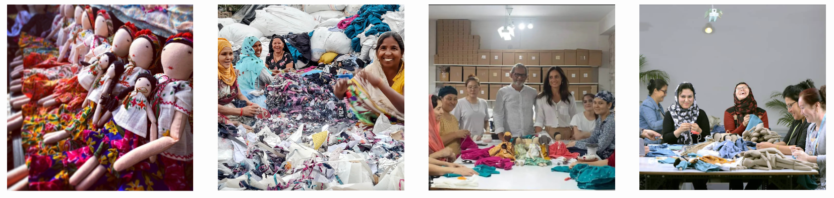 インドに逃れた彼女たちが、そこで衣料品会社が生産工程で廃棄する大量の布の端切れを使い故郷で培ってきた縫製技術を活かしアップサイクルしたお人形。世界フェアトレード機関加盟生産者の製品(WFTO)であるとともにUNHCR (国連難民機関) が義務付けた難民のための生計プログラムMADE51の商品としても取り扱われています。店主が目指すのは「ウェルフェアトレード」