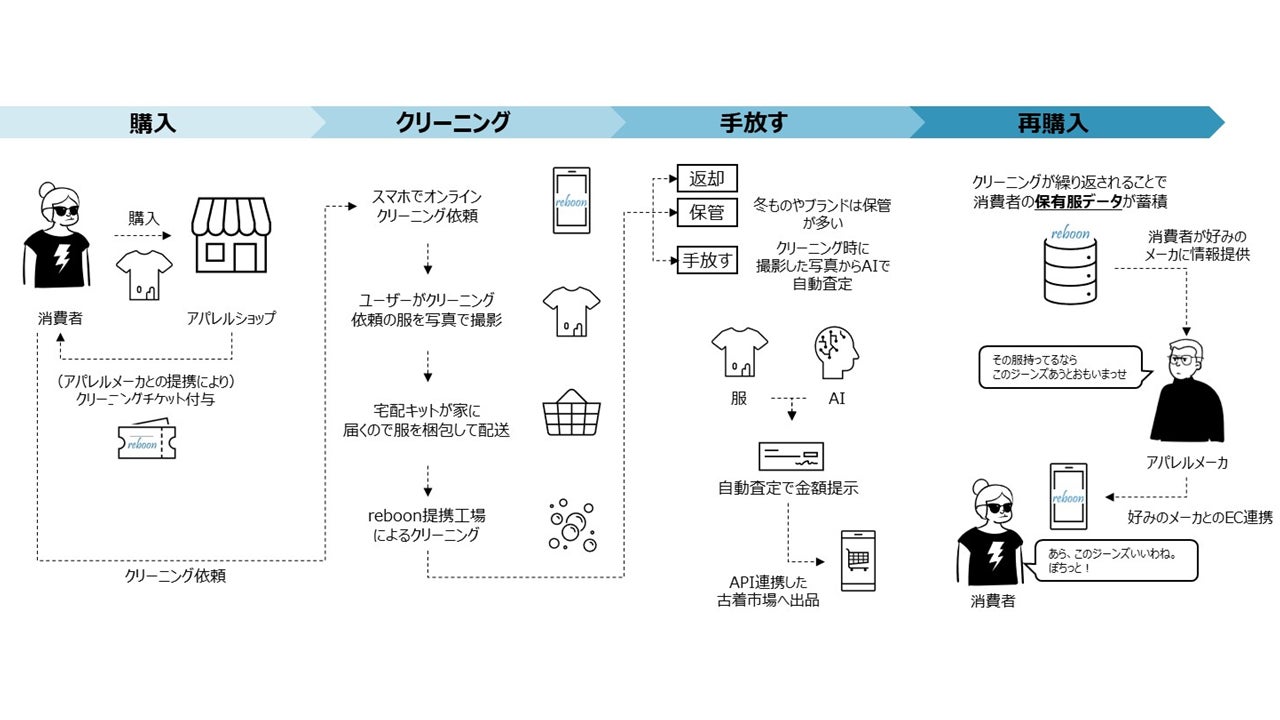 取り組みの中核となるのは、AI技術を用いて集められた衣類のクリーニングデータの分析です。これにより、アパレル企業、リユース企業、再資源化企業との連携を深め、衣類の持つ価値を最大限に引き出し、長期的な使用を促進しサステナブルファッションを推進します。