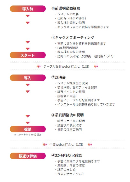 ハードウェアメーカーとの連携により、GPUやPC、サーバーの調達を含めた総合的な導入提案を展開する体制を整えており、あらゆる企業が生成AIを活用できる環境を手軽に構築できるようサポートしてまいります。PoCからの導入となり、その後の活用提案、導入コンサルティング、本格導入にかかる費用は内容に応じての見積となります。ただし、PoCで構築した環境はそのまま社内資産として活用し続けていただくことが可能です。