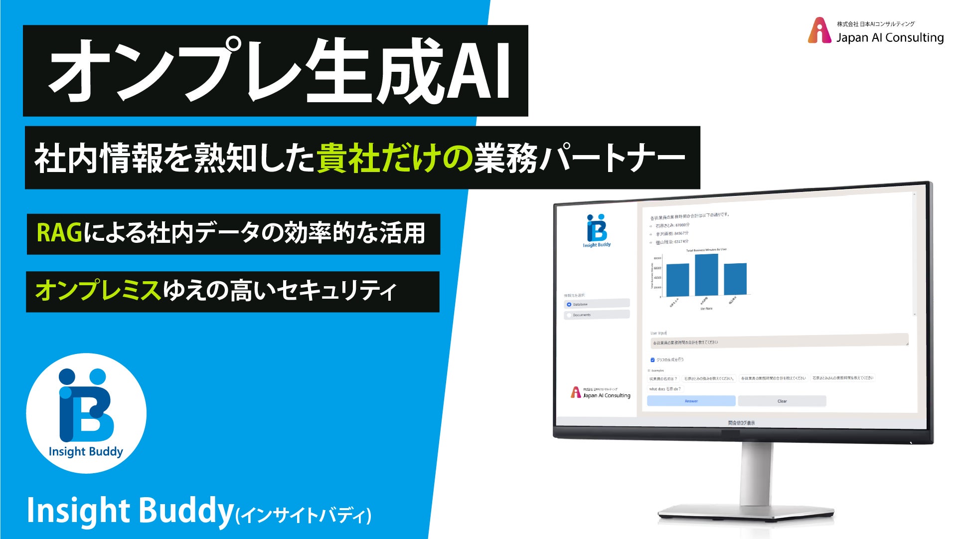 株式会社 日本AIコンサルティング(大阪府吹田市 代表取締役 香月章宏)は、中小企業をメインターゲットとした、小規模から段階的に導入できるオンプレミス(※1)生成AI導入パッケージ『Insight Buddy』をリリースいたしました。