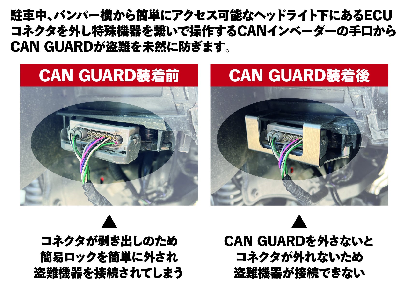 【CANガード】(CAN通信に使うコネクター類をカバーし防犯ネジでロックすることでアクセスできなくする商品)を独自開発いたしました。