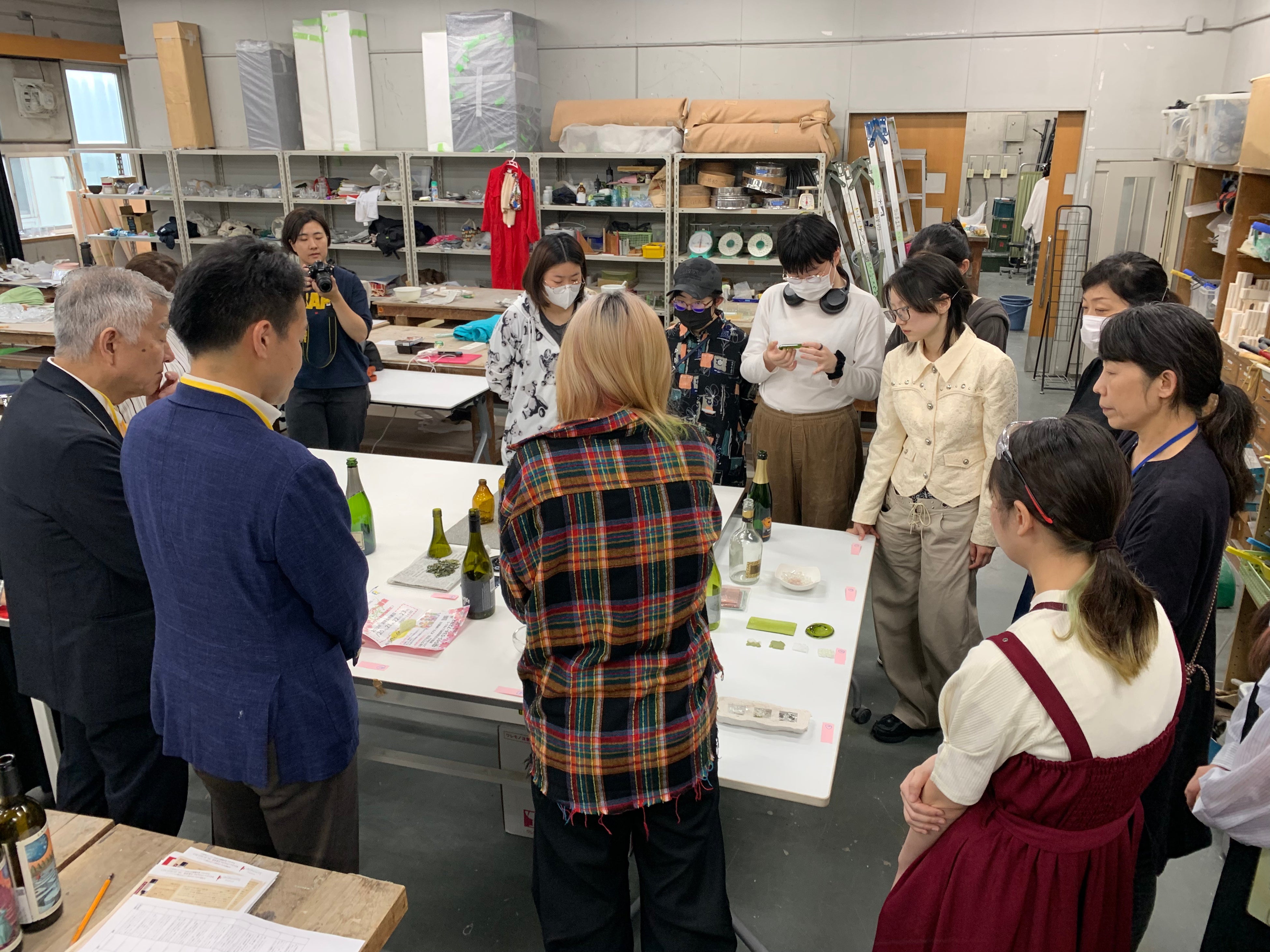 講義の後は工房にて、学生たちが個々に選んだボトルの素材を実験した結果を発表。