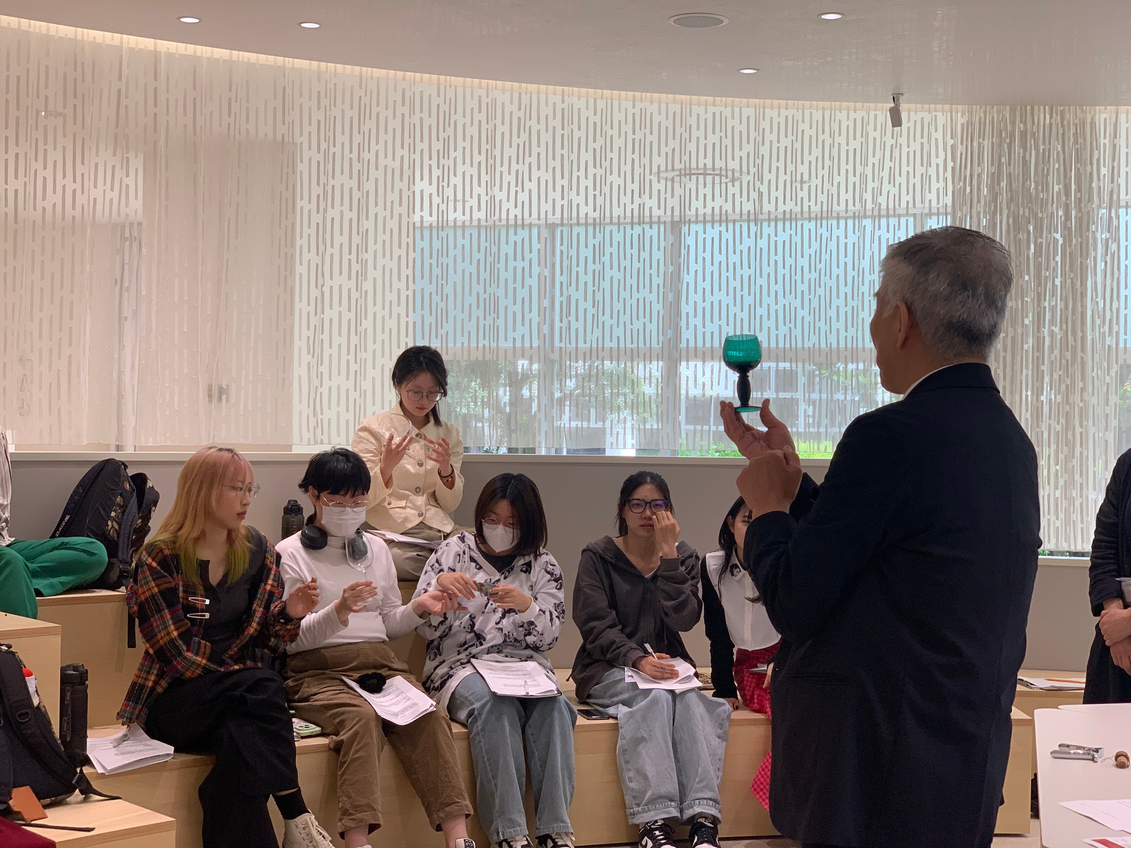 まだワインについてよく知らない飲んだことがない、という学生が大半でしたが、特別講義を受けワインへの興味を深めながら、これからスタートする各々の創作へ繋げていく機会となりました。