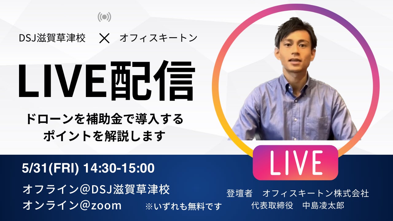 DSJ滋賀草津校様にお招きを頂き、代表・中島が【ドローン×補助金】のテーマで登壇する共催セミナーを行います