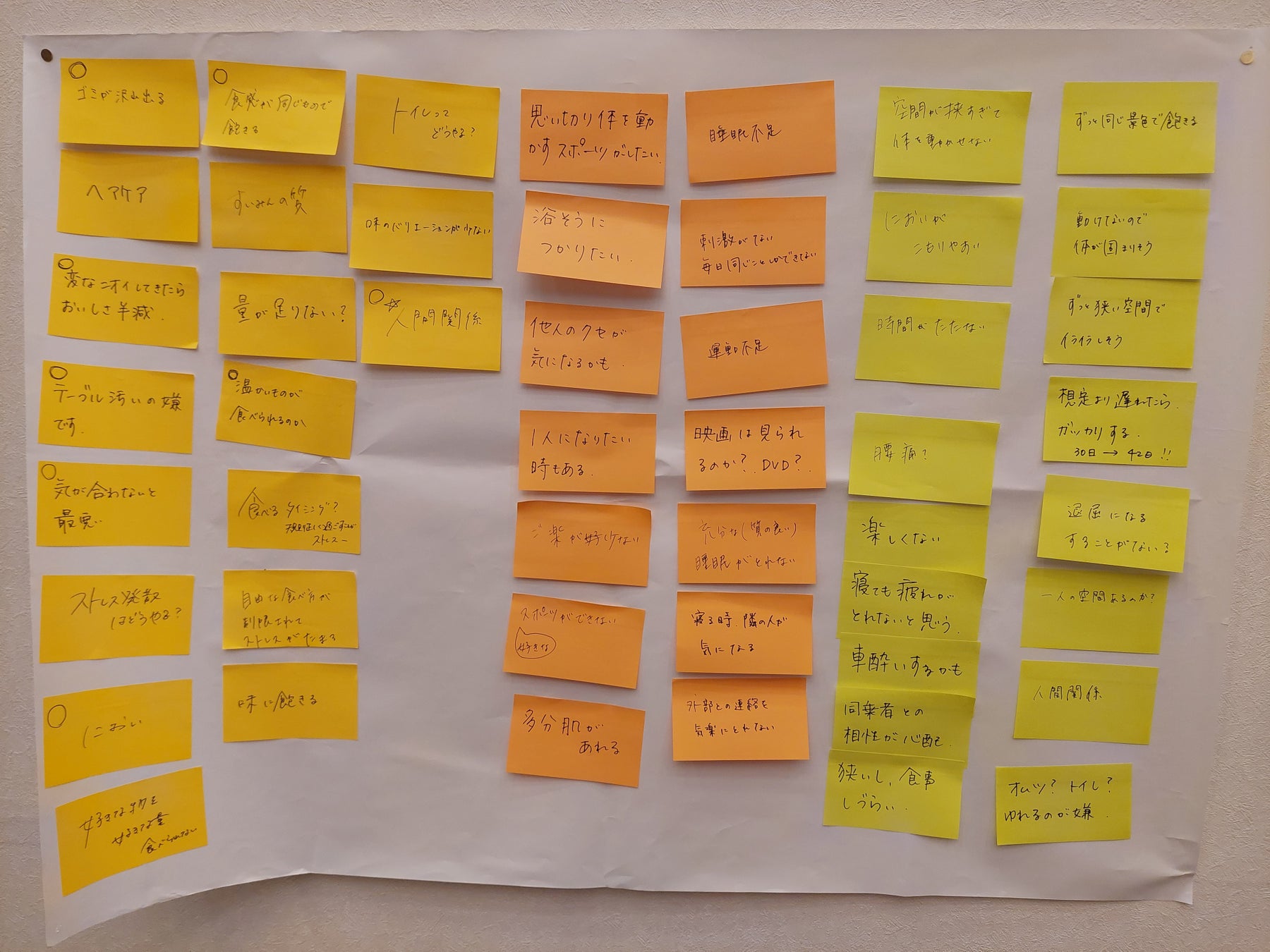 ワークショップでは、参加者が直面する宇宙ステーションおよび月面ローバーでの生活の困りごとを想定し、地球上の問題解決に応用する方法を探求しました。宇宙生活の困りごとが地球上の生活改善につながるユニークなアイデアが多数出され、参加者からは高い関心と評価を得ました。
