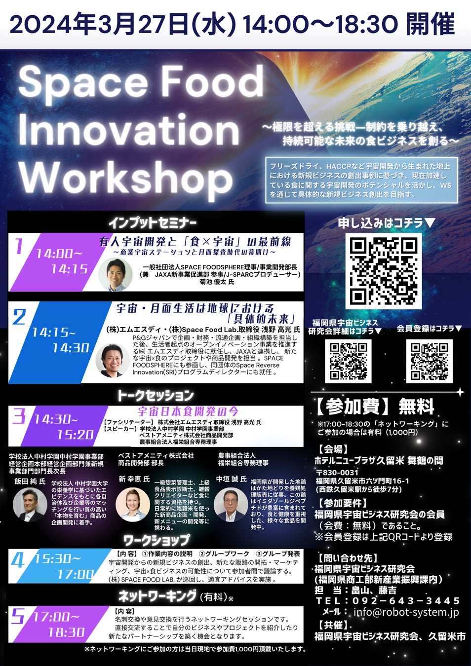 第1回「スペースフード・イノベーション・ワークショップ」を2024年3月27日に福岡県久留米市で実施しました。