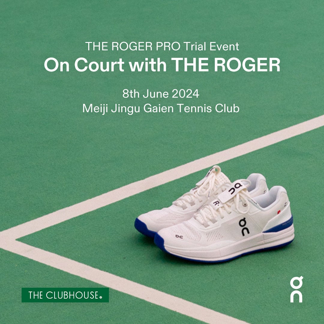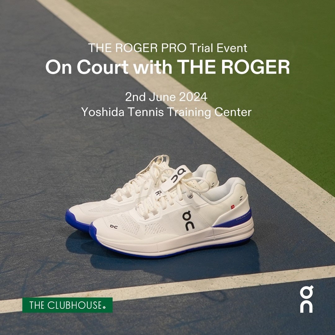 今回のイベントではTHE CLUBHOUSEのオリジナルアパレル商品を販売するほか、On(オン)の競技用テニスシューズTHE ROGER Proのトライアルを実施。オン・ジャパン社員による商品説明はもちろん、オンコートでテニスをプレイしたり、コートサイドでショッピングをしたりして楽しめるイベントです。