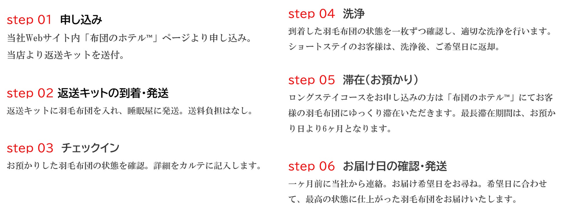 また、当社は通信販売で全国、特に首都圏のお客様が多く、首都圏在住のお客様にヒアリングをかけたところ、マンション生活の場合そもそも布団を保管する場所が狭く、大型なモノはストレージサービス(月額一律料金で借りられる個人向けの貸倉庫)を利用するケースが多い傾向が見られました。そこで、全国の羽毛布団ユーザーにこの夏の保管問題と来冬の快適な睡眠をW解決する、羽毛布団のプレミアムケアサービス「布団のホテル™」を2024年6月20日(木)より本格受注開始しました。
