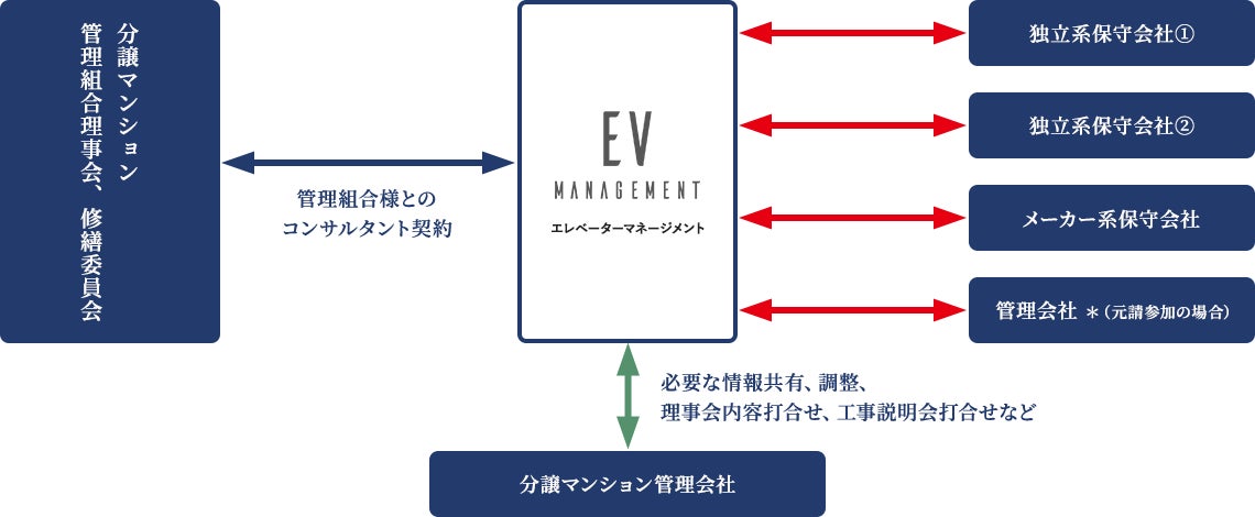 エレベーター設備を所有・利用されている管理組合様や個人オーナー様のエレベーターに関するあらゆるお困り事や疑問の解決し、安全により利用しやすくランニングコストを抑えながらエレベーター保全管理について助言、アドバイス、サポートができるエレベーター専門のコンサルティングサービスです。