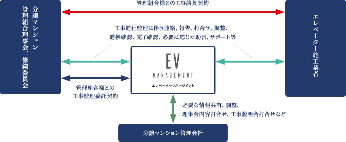 エレベーター業界の専門知識と経験・実績のあるコンサルタントが、管理組合様と一体となり、エレベーターリニューアル工事から日々の保守管理を、透明性をもって運営していけるようにコンサルティング、サポートいたします。