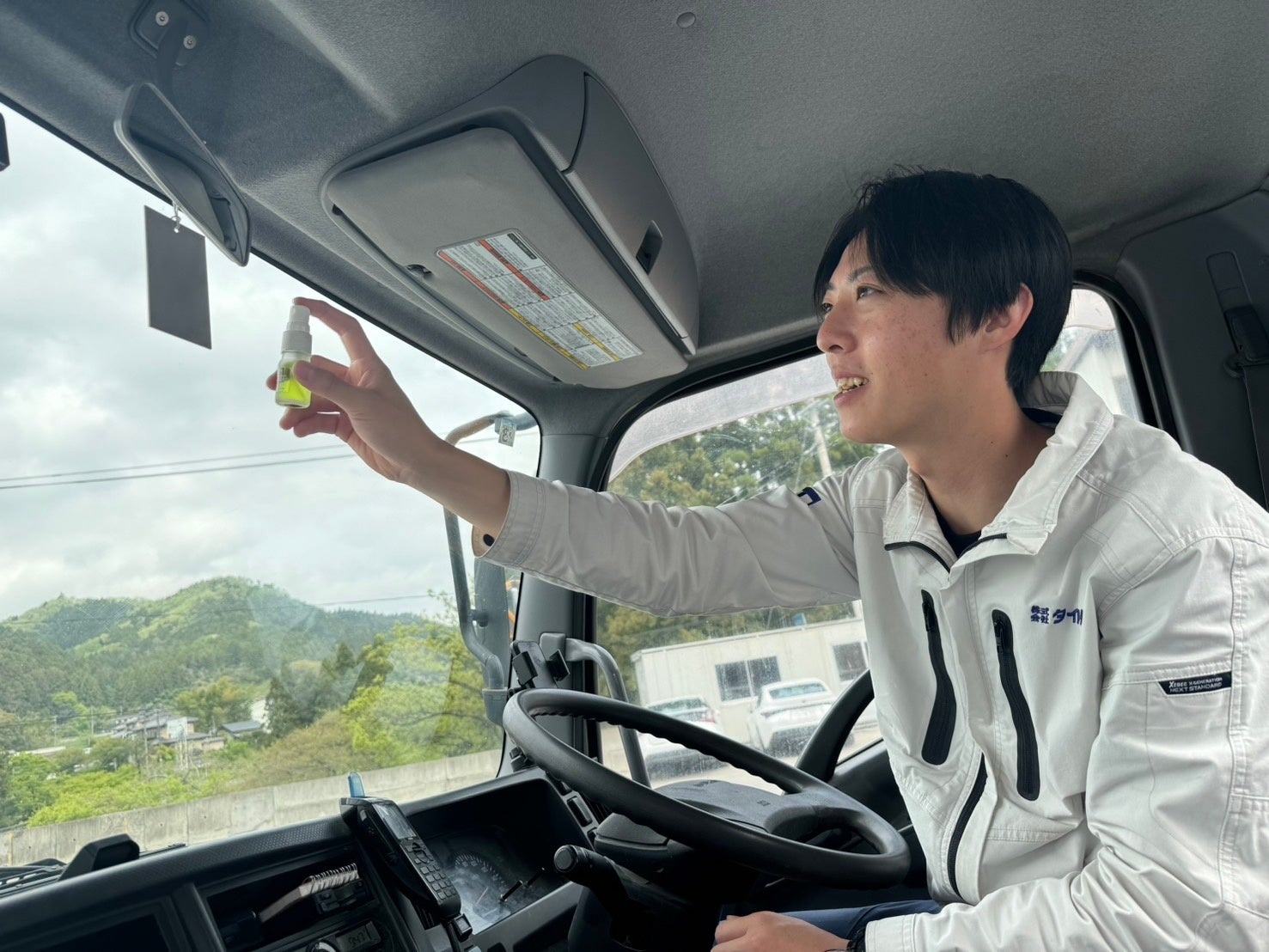また、当社は業界でも小型ミキサー車保有数がトップクラスで、ドライバーの社員も多く働いています。一日の多くを車内で過ごす社員の労働環境を少しでも快適なものにするという課題に対しても、CONCRETE DIFFUSERとアロマスプレーが役立つと考えております。