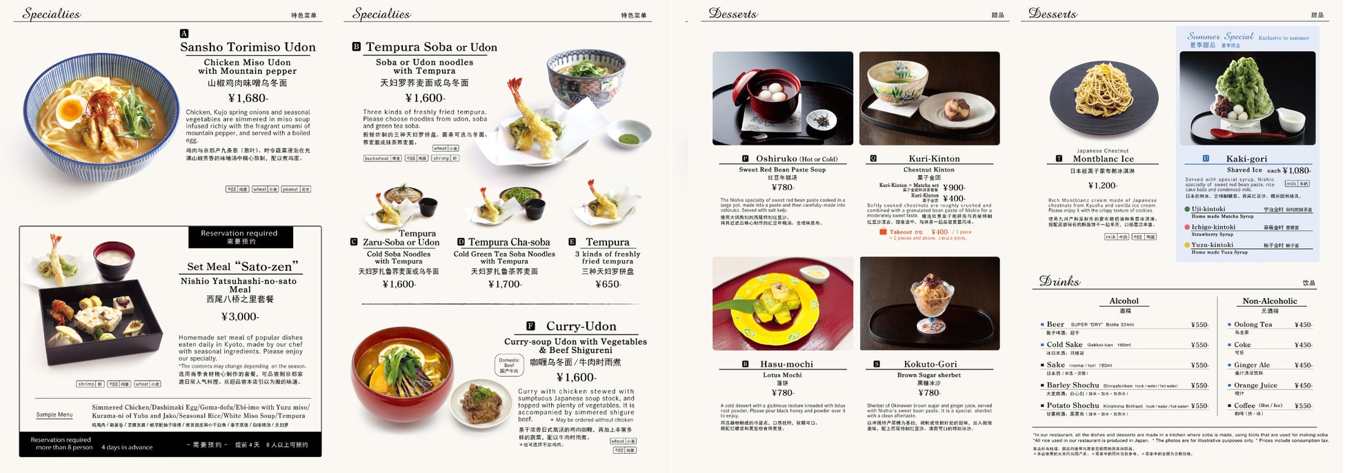 西尾八ッ橋の里(本家八ッ橋西尾株式会社 本社:京都府京都市左京区、代表取締役:西尾為和)は、2024年4月1日(月)より、お食事をさらに楽しんでいただけるよう、英語と中国語の2言語対応メニューを新たに導入いたしました。
